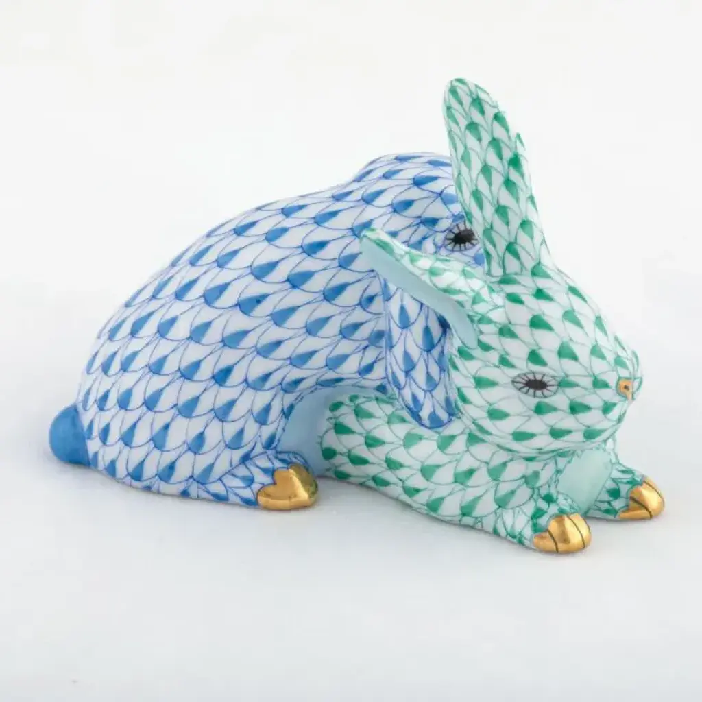Endearing animals meek and bold, large and small, demure and majestic eagerly await the chance to melt your heart and warm your home. Each is brought to life by the skilled hands of artisans crafting and painting these charming porcelain creatures. The famous fishnet décor adorning many of the animals took form in 1858 when a Herend painter became inspired by a fishscale design he saw on a Chinese porcelain plate and painted a similar pattern onto a rooster figurine to imitate feathers. The rest is history, with the fishnet design now a Herend signature prized worldwide. Now the biggest porcelain manufactory in Europe, Herend was founded in 1826 to produce earthenware in the small Hungarian village for which it was named. At the time, Hungary was flooded with low-cost pottery, but in 1839, Mor Fischer became the Manufactory’s new owner and he decided to focus on producing dinnerware replacement pieces for Europe’s royal families to complement their valuable porcelain patterns from Germany and the Far East. As his client base grew, Fischer commissioned his artists to begin designing dinnerware patterns of their own. Queen Victoria’s 1851 purchase of a large set for Windsor Castle was a milestone, setting the stage for aristocrats throughout Europe to clamor for Herend in their estates. In the 1850s, Herend added meticulously-crafted figurines to its creations. Herend’s trademark fishnet pattern, which is widely recognized and prized as Herend’s signature design, started in 1858 when an artist who was intrigued with a Chinese plate’s fish scale design painted it onto a rooster figurine to imitate feathers.