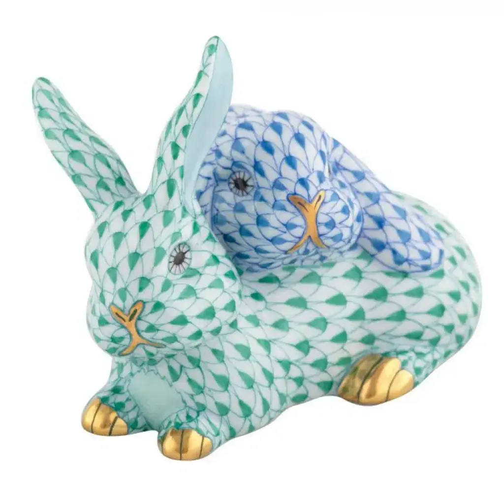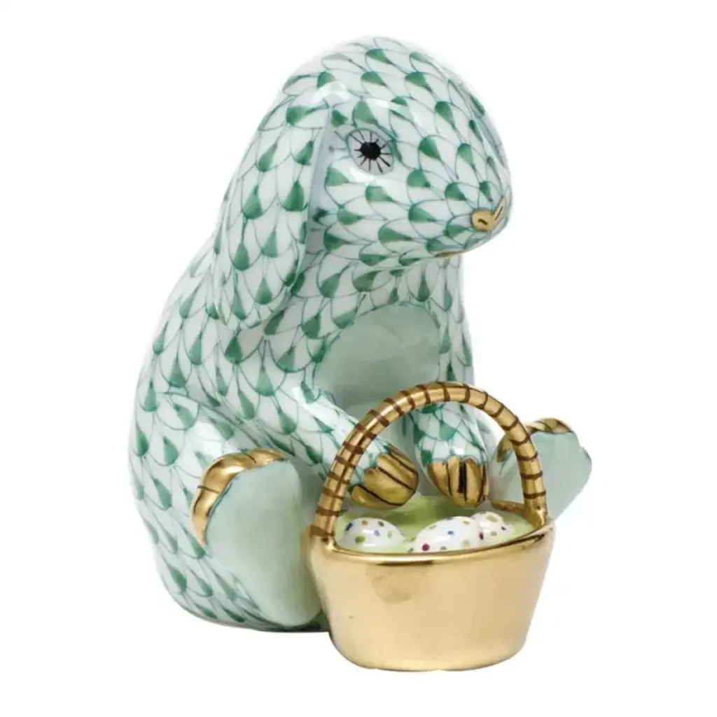 Endearing animals meek and bold, large and small, demure and majestic eagerly await the chance to melt your heart and warm your home. Each is brought to life by the skilled hands of artisans crafting and painting these charming porcelain creatures. The famous fishnet décor adorning many of the animals took form in 1858 when a Herend painter became inspired by a fishscale design he saw on a Chinese porcelain plate and painted a similar pattern onto a rooster figurine to imitate feathers. The rest is history, with the fishnet design now a Herend signature prized worldwide. Now the biggest porcelain manufactory in Europe, Herend was founded in 1826 to produce earthenware in the small Hungarian village for which it was named. At the time, Hungary was flooded with low-cost pottery, but in 1839, Mor Fischer became the Manufactory’s new owner and he decided to focus on producing dinnerware replacement pieces for Europe’s royal families to complement their valuable porcelain patterns from Germany and the Far East. As his client base grew, Fischer commissioned his artists to begin designing dinnerware patterns of their own. Queen Victoria’s 1851 purchase of a large set for Windsor Castle was a milestone, setting the stage for aristocrats throughout Europe to clamor for Herend in their estates. In the 1850s, Herend added meticulously-crafted figurines to its creations. Herend’s trademark fishnet pattern, which is widely recognized and prized as Herend’s signature design, started in 1858 when an artist who was intrigued with a Chinese plate’s fish scale design painted it onto a rooster figurine to imitate feathers.