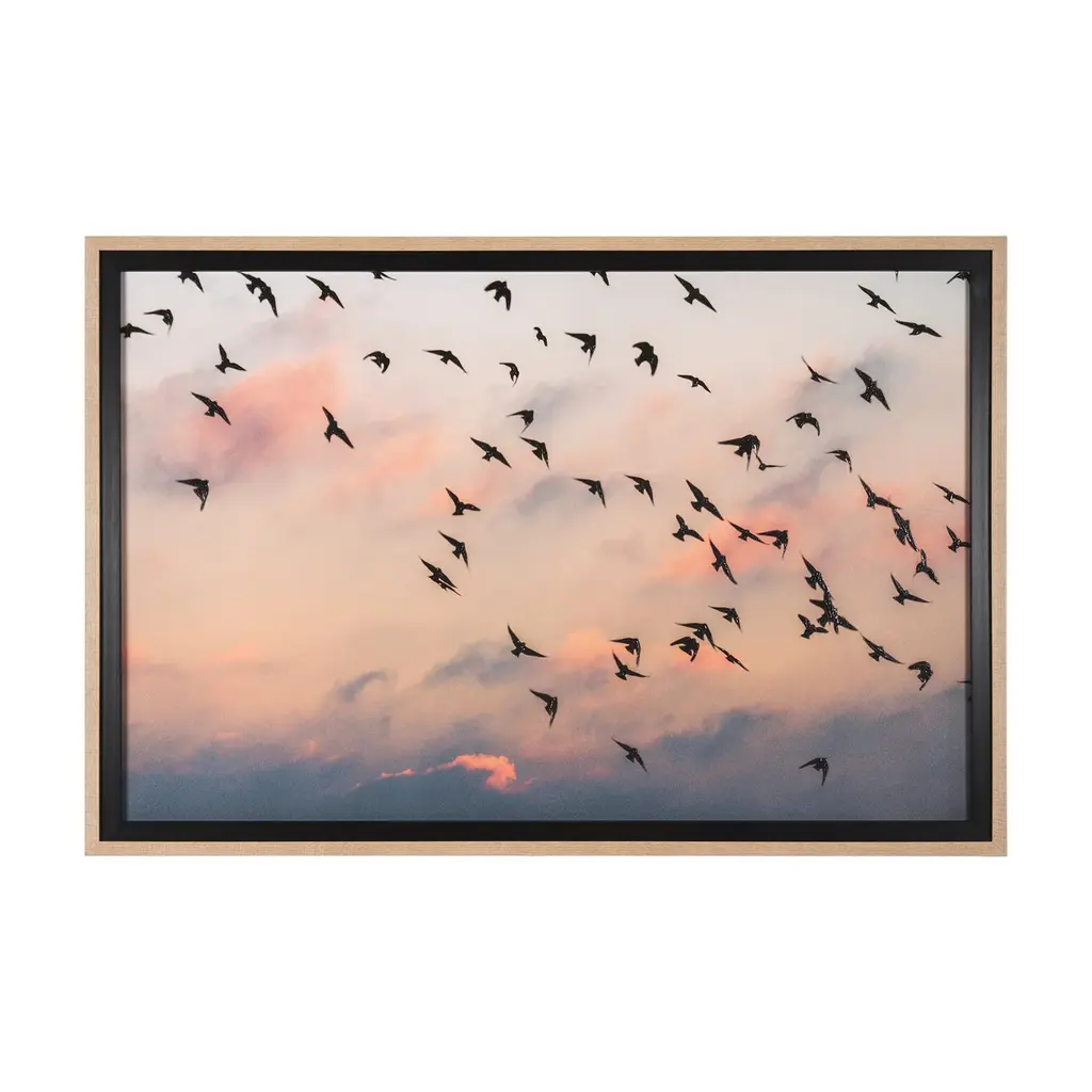 Bring a soft statement to your wall art curation. This serene scene inspires a moment of quiet grace in your wall decor with a bevy of swans in flight. The subtle blues and soft tufts of cloud add to its depthperfect for a thoughtfully refined edit.