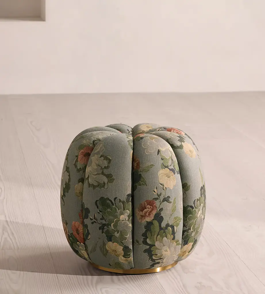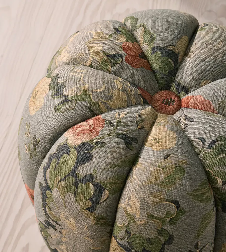 A rounded silhouette, fully upholstered in our Skylar floral-print linen. The Sofia footstool is inspired by the styles found in our club spaces and bedrooms at Soho House Barcelona and Kettner's in London. Fully upholstered in our in-house designed Skylar floral-print linen, it features a compact, rounded silhouette with a small button at the top for a tailored finish.