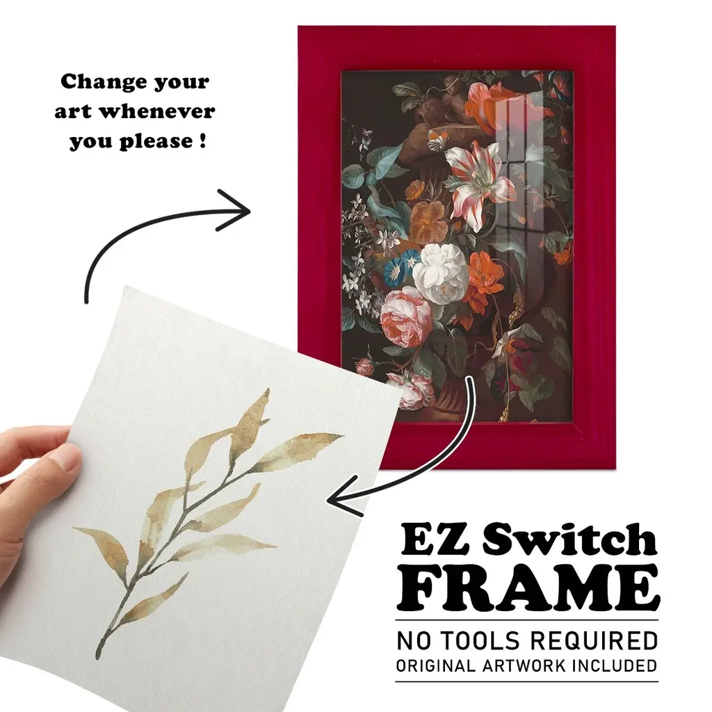 Soft Autumn Branch I -EZ SWITCH Framed Print w/glass-Cherry Red A delightful, framed print. Featuring a solid wood frame with real wood glass. This premium print is giclee quality. In addition, every frame features a removable back and table top stand. This allows you to change your art in the future or to just stand the art on a table for a new look. We are sure you'll enjoy our new series of EZ SWITCH Framed Art. Solid Wood Frame Real Glass Removable / Replaceable Art Built in Tabletop Stand Sizes range from 4x6 up to 12x15 - buy just one or pair them up as sets as you see fit.