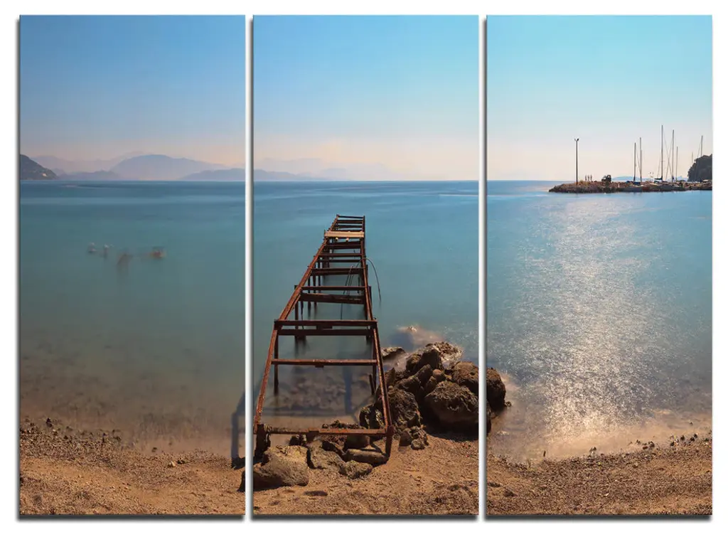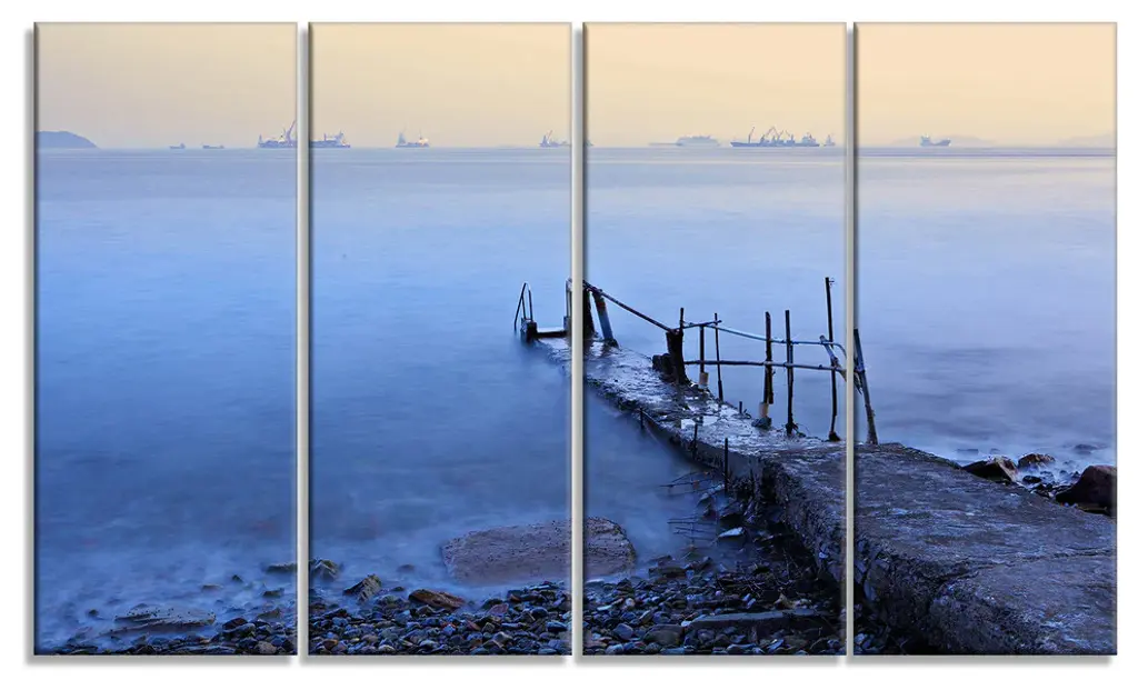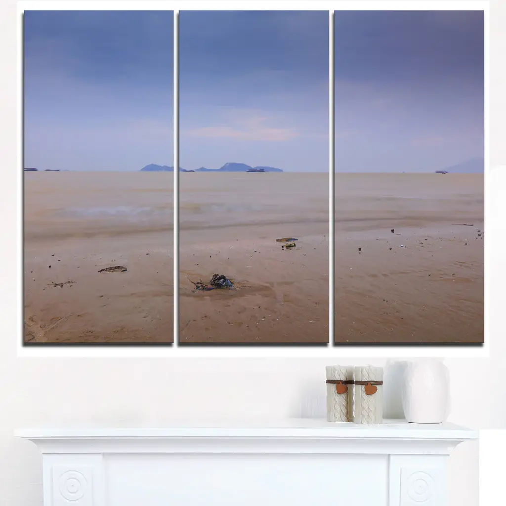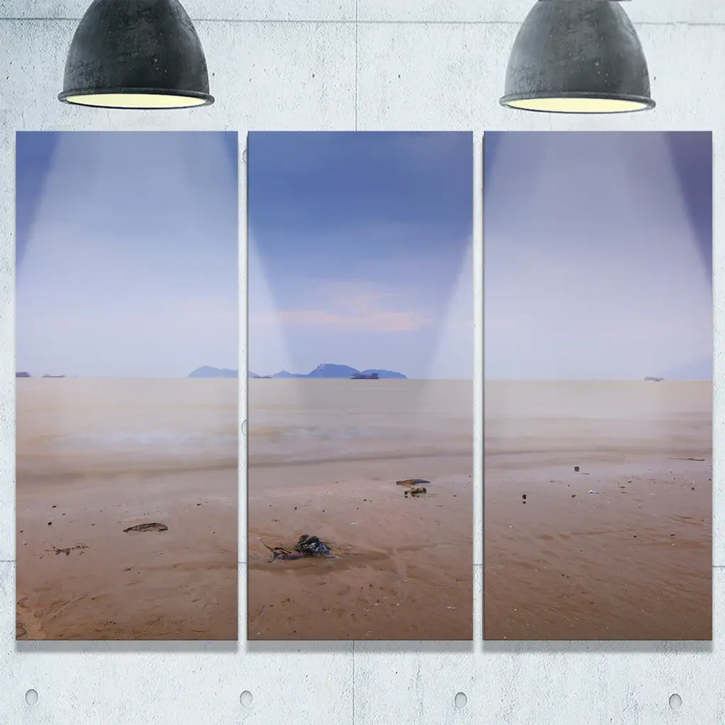 "Soft Blue Sunset At Lung Kwu Tan Beach" Metal Wall Art, 3 Panels, 36"x28"