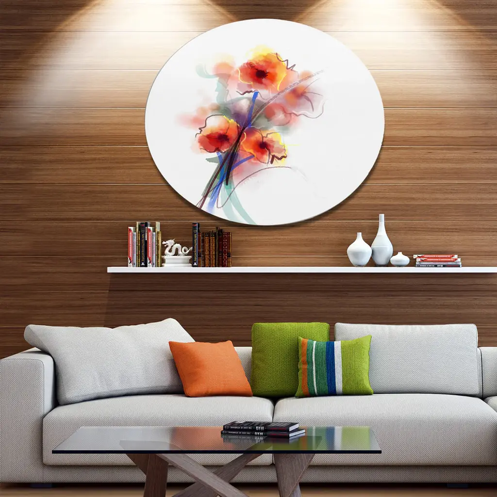 Soft Color Flowers On White Background, Floral Disc Metal Wall Art, 23"