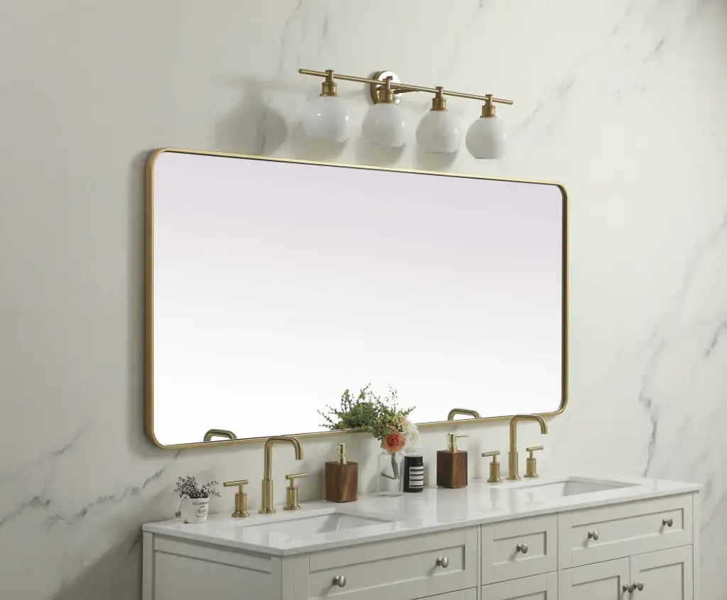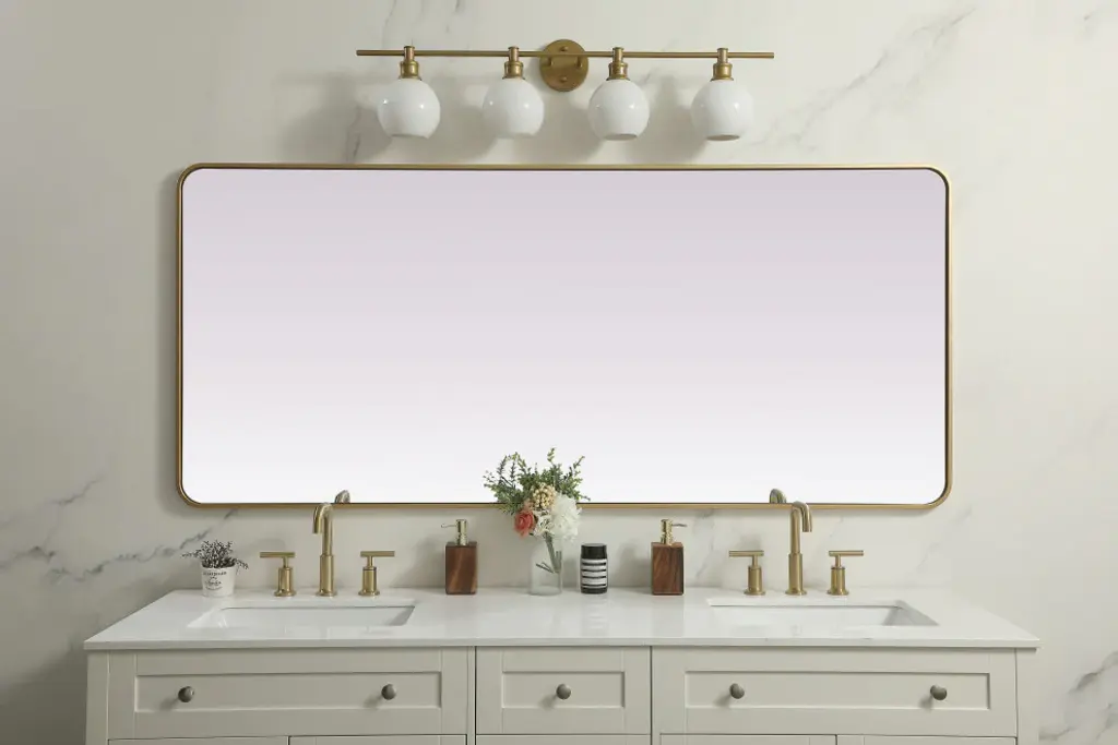 Soft Corner Metal Rectangle Mirror 32x72 Inch, Brass