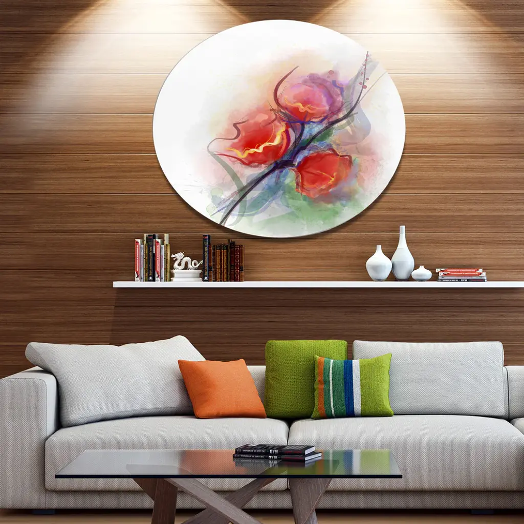 Bring Contemporary Abstraction to your home with this large Circle Metal wall art. This Soft Floral Watercolor on Splashes Metal Artwork makes it the focal point of any room or office. - White Gloss Coating ensures colors are extra vibrant with light reflection.- Aluminum grade Sheet Metal with 1 inch mounting frame on the back giving the illusion that the artwork is floating on the wall..- Mounting Brackets are included along with instructions.- High Quality Digital images are created directly into a glossy aluminum panel producing a stunning and captivating print into the glossy finish of the metal.- Water, Fire and Scratch resistant HD Aluminum panels.- Looks better than any photo paper and guaranteed to last at least 20 years- Easy to clean with a microfiber cloth. Colors are far superior to regular Canvas Art. - Easy to Hang