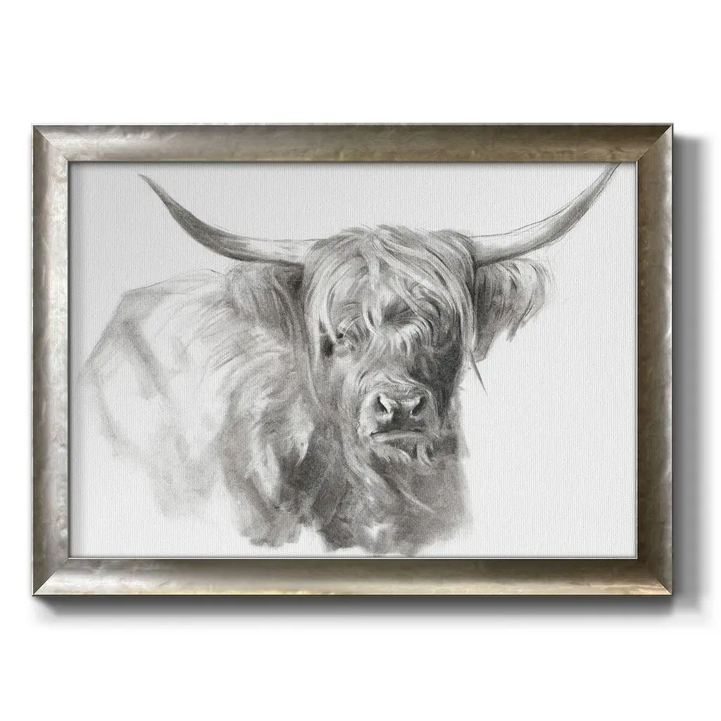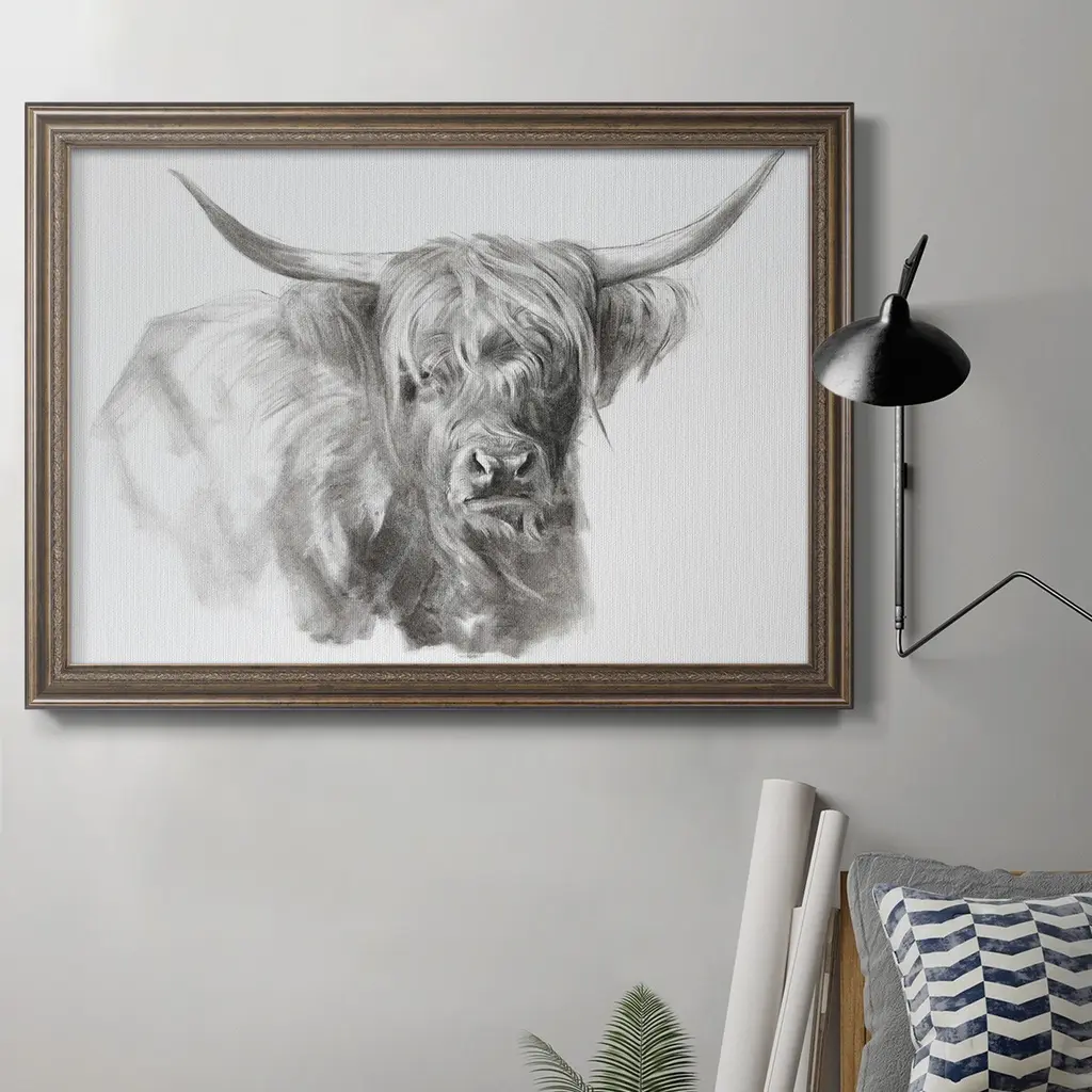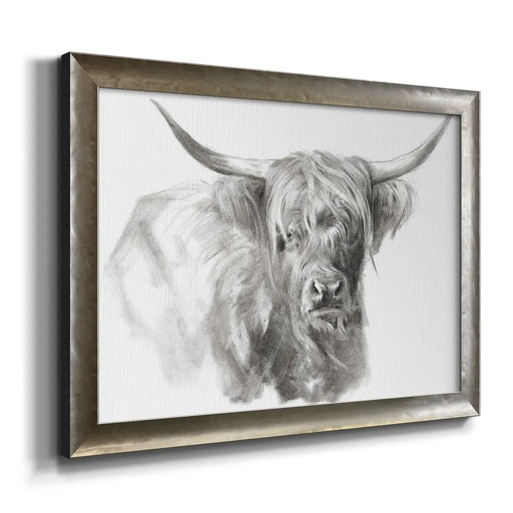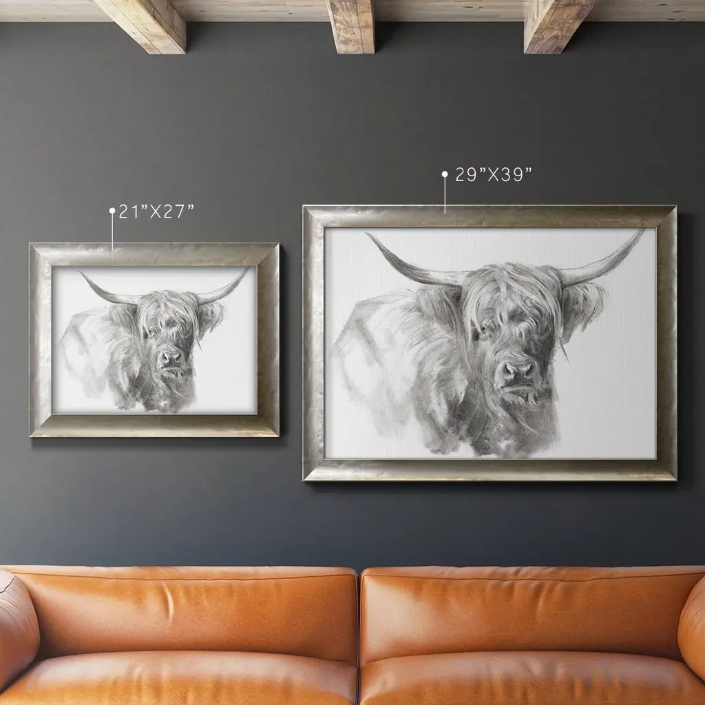 Soft Focus Highland Cattle I Premium Framed Canvas- Ready to Hang A Premium Framed Canvas created to last. Framed in distressed wood and available in an array of sizes and colors Featuring a beveled a solid wood stretcher bar, each piece comes ready to hand 3 SIZES AVAILABLE 16''X20'' - Overall Size 18'X27'' - Overall Size 24''x36'' - Overall Size Each piece is made to order. Each piece comes with hanging hardware. Made in the USA Ready to Hang Giclee Paper Print Acrylic Glass Beveled Matt Board