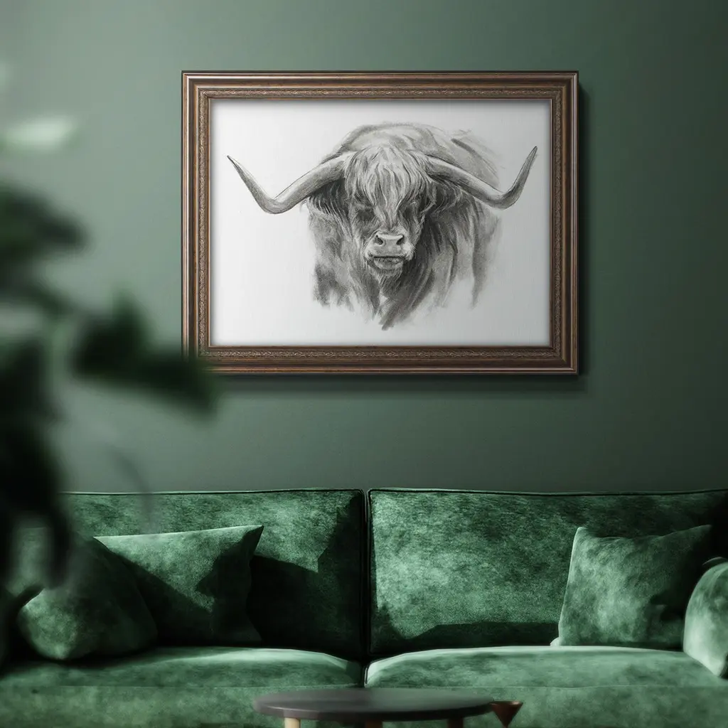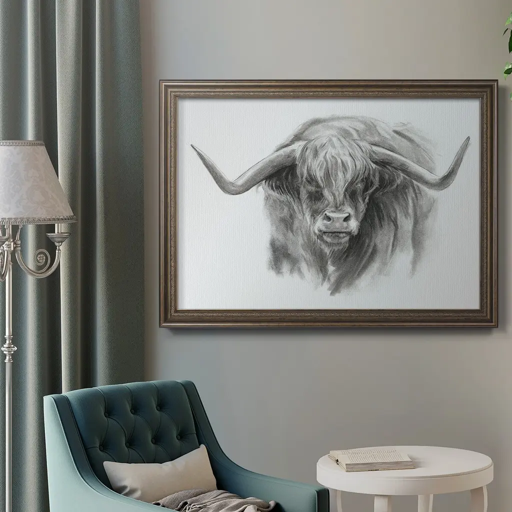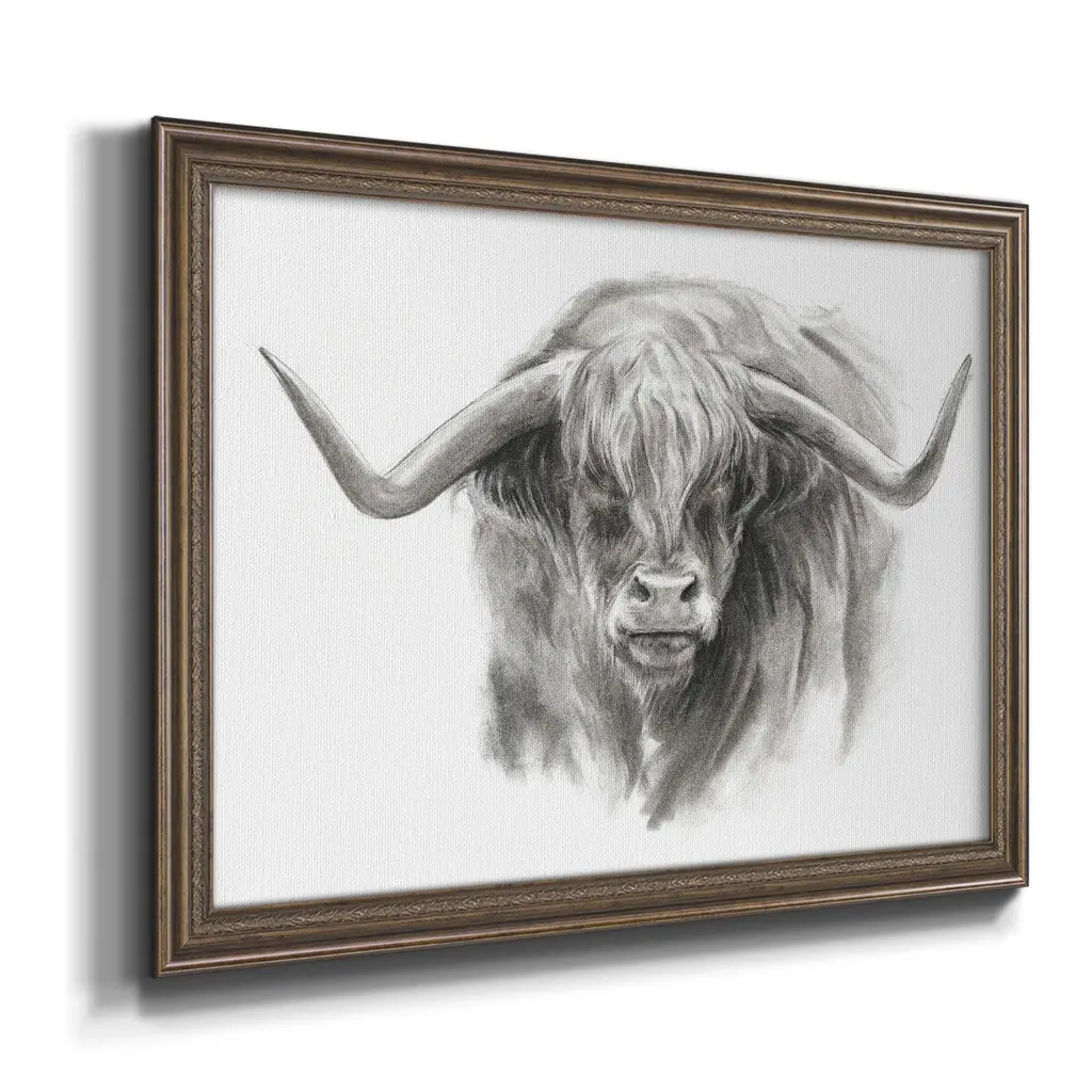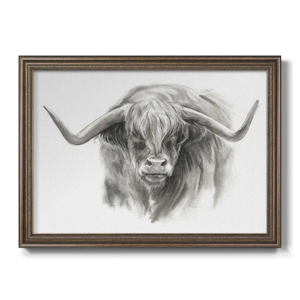 Soft Focus Highland Cattle II Premium Framed Canvas- Ready to Hang A Premium Framed Canvas created to last. Framed in distressed wood and available in an array of sizes and colors Featuring a beveled a solid wood stretcher bar, each piece comes ready to hand 3 SIZES AVAILABLE 16''X20'' - Overall Size 18'X27'' - Overall Size 24''x36'' - Overall Size Each piece is made to order. Each piece comes with hanging hardware. Made in the USA Ready to Hang Giclee Paper Print Acrylic Glass Beveled Matt Board