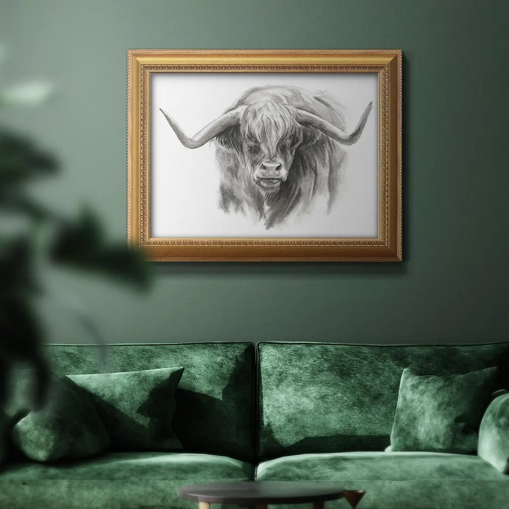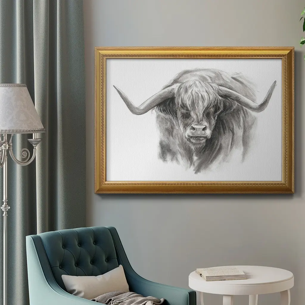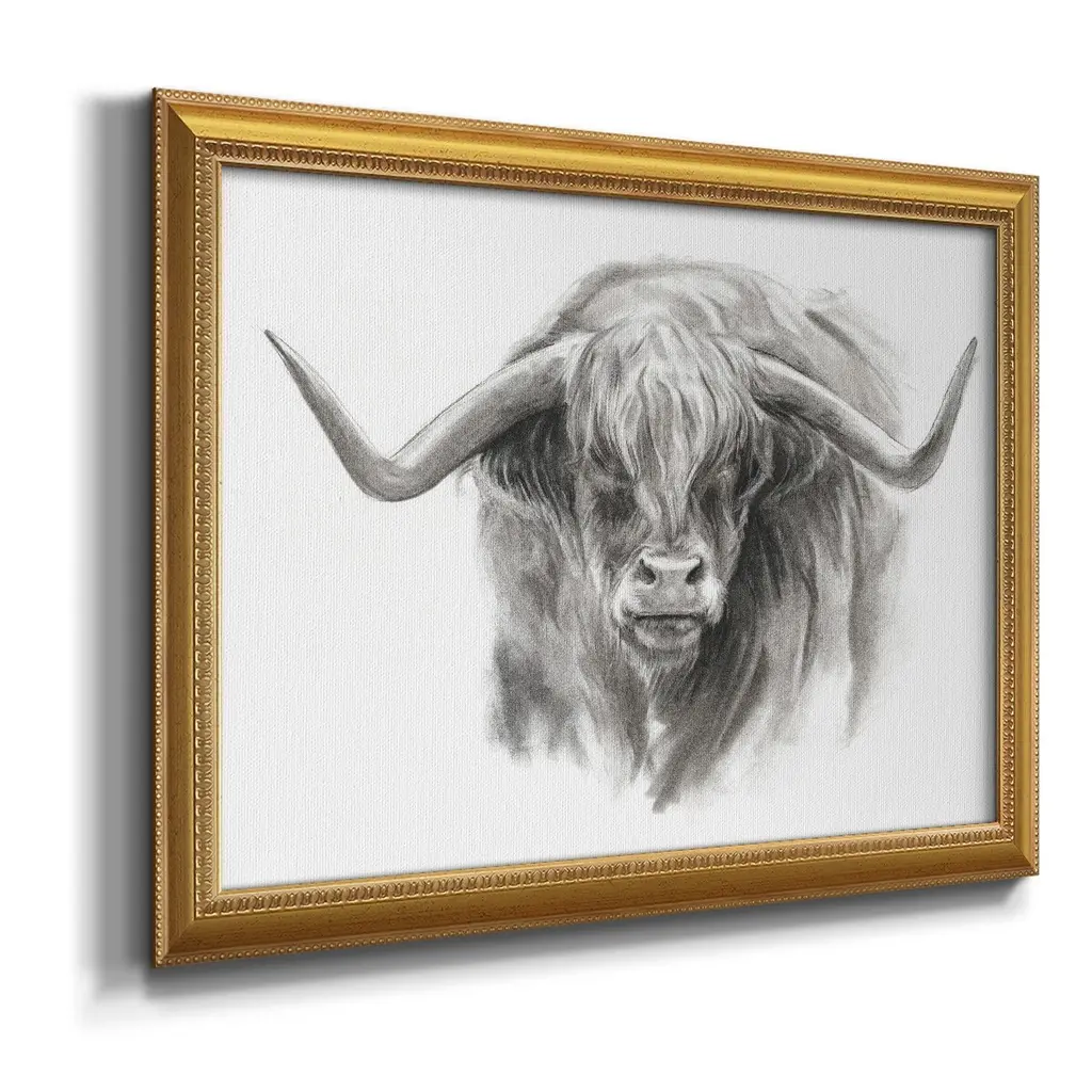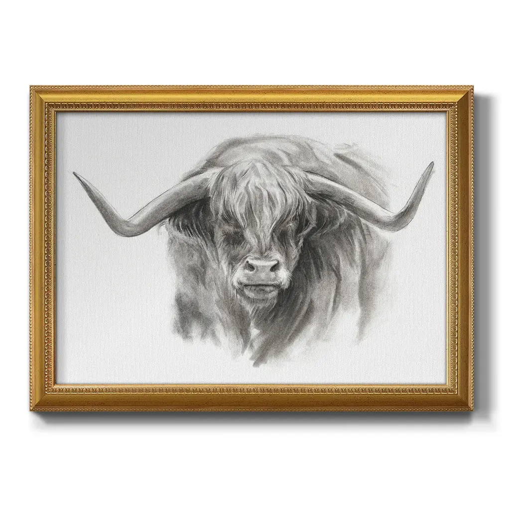 Soft Focus Highland Cattle II Premium Framed Canvas- Ready to Hang A Premium Framed Canvas created to last. Framed in distressed wood and available in an array of sizes and colors Featuring a beveled a solid wood stretcher bar, each piece comes ready to hand 3 SIZES AVAILABLE 16''X20'' - Overall Size 18'X27'' - Overall Size 24''x36'' - Overall Size Each piece is made to order. Each piece comes with hanging hardware. Made in the USA Ready to Hang Giclee Paper Print Acrylic Glass Beveled Matt Board