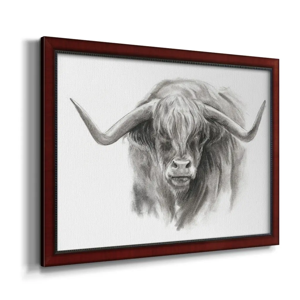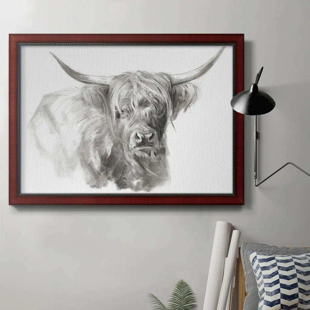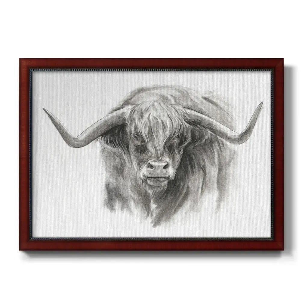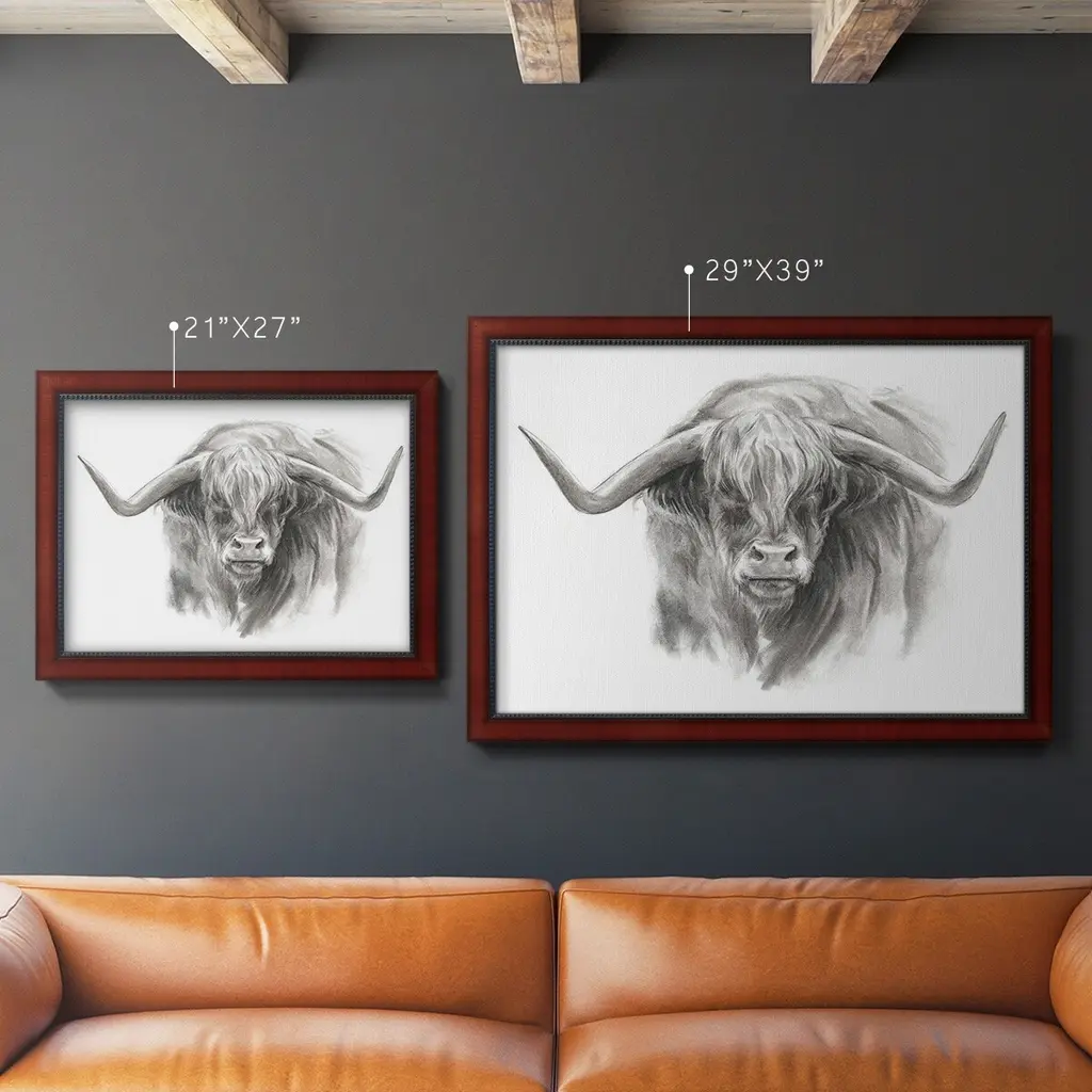 Soft Focus Highland Cattle II Premium Framed Canvas- Ready to Hang A Premium Framed Canvas created to last. Framed in distressed wood and available in an array of sizes and colors Featuring a beveled a solid wood stretcher bar, each piece comes ready to hand 3 SIZES AVAILABLE 16''X20'' - Overall Size 18'X27'' - Overall Size 24''x36'' - Overall Size Each piece is made to order. Each piece comes with hanging hardware. Made in the USA Ready to Hang Giclee Paper Print Acrylic Glass Beveled Matt Board