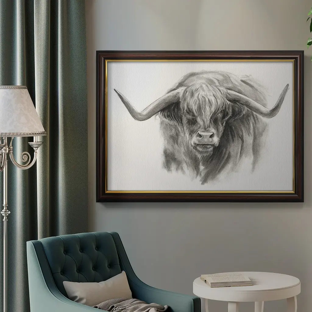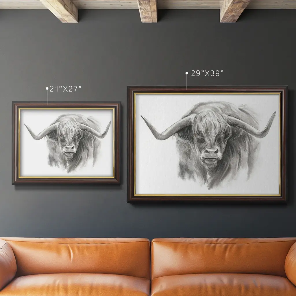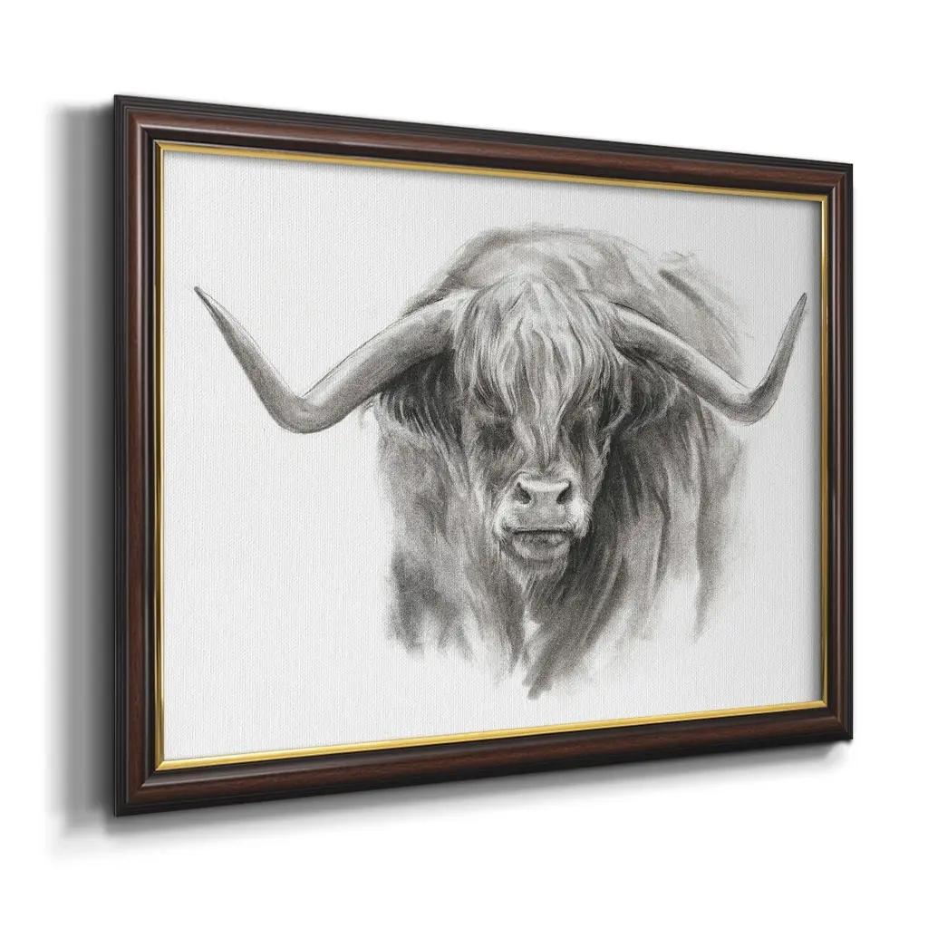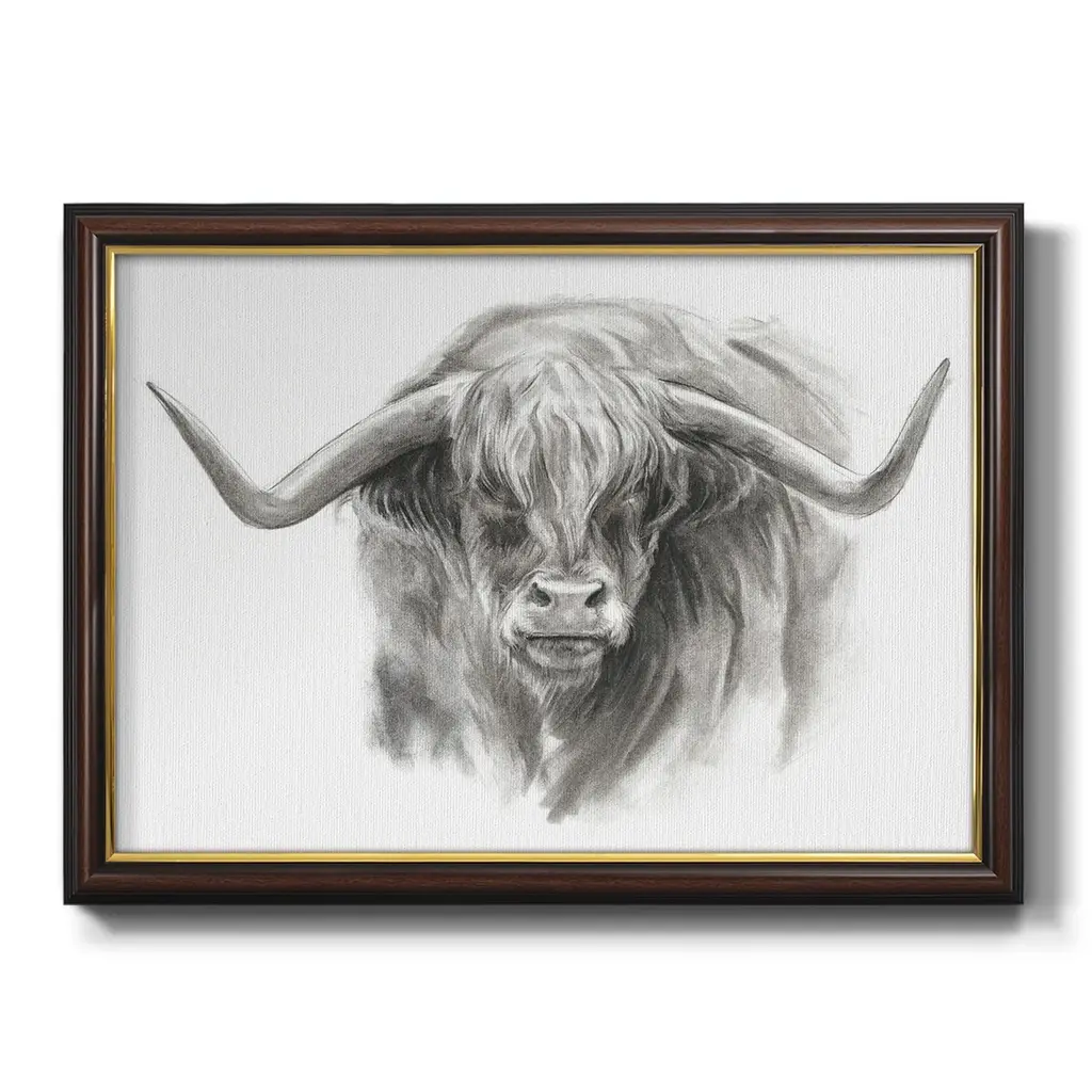Soft Focus Highland Cattle II Premium Framed Canvas- Ready to Hang A Premium Framed Canvas created to last. Framed in distressed wood and available in an array of sizes and colors Featuring a beveled a solid wood stretcher bar, each piece comes ready to hand 3 SIZES AVAILABLE 16''X20'' - Overall Size 18'X27'' - Overall Size 24''x36'' - Overall Size Each piece is made to order. Each piece comes with hanging hardware. Made in the USA Ready to Hang Giclee Paper Print Acrylic Glass Beveled Matt Board