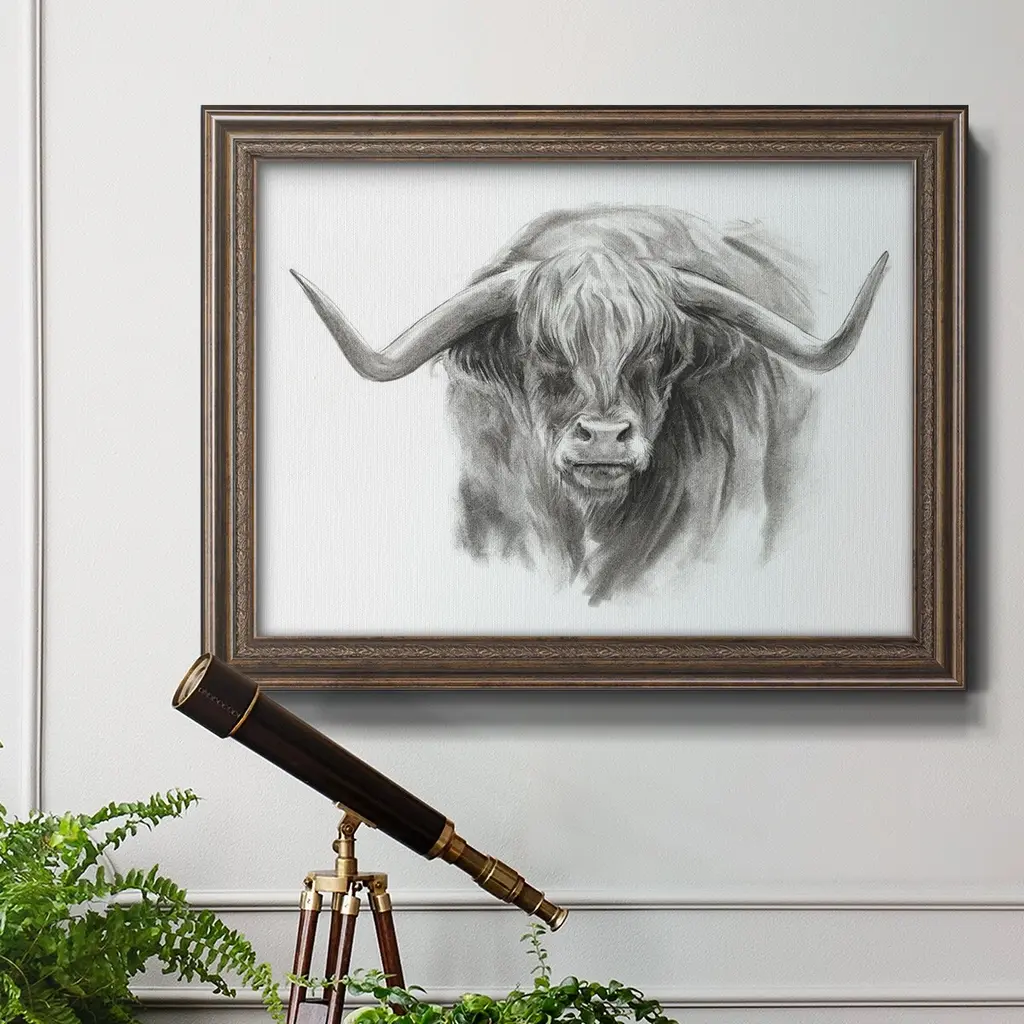 Soft Focus Highland Cattle II Premium Framed Canvas- Ready to Hang A Premium Framed Canvas created to last. Framed in distressed wood and available in an array of sizes and colors Featuring a beveled a solid wood stretcher bar, each piece comes ready to hand 3 SIZES AVAILABLE 16''X20'' - Overall Size 18'X27'' - Overall Size 24''x36'' - Overall Size Each piece is made to order. Each piece comes with hanging hardware. Made in the USA Ready to Hang Giclee Paper Print Acrylic Glass Beveled Matt Board
