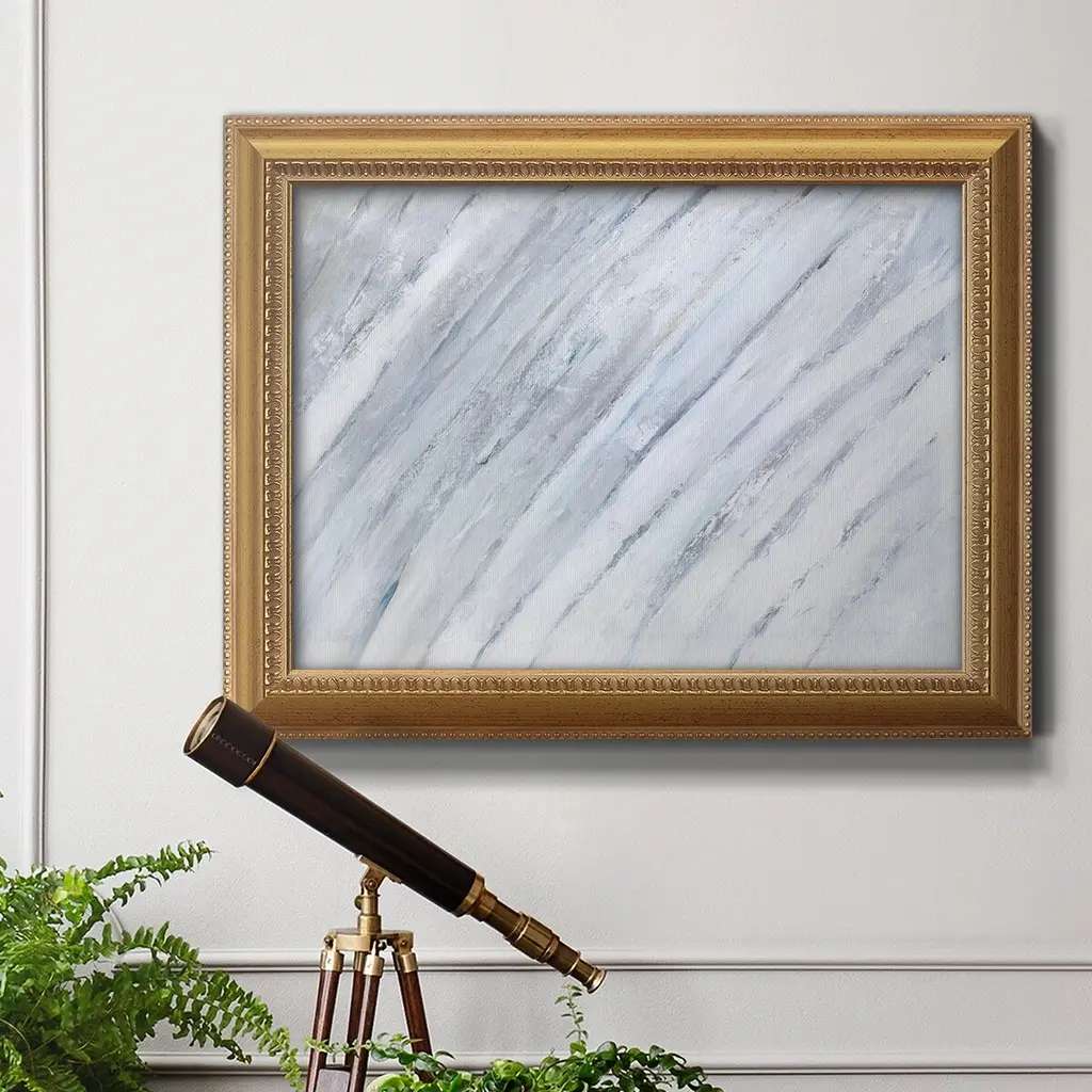 Soft Fronds I Premium Framed Canvas- Ready to Hang A Premium Framed Canvas created to last. Framed in distressed wood and available in an array of sizes and colors Featuring a beveled a solid wood stretcher bar, each piece comes ready to hand 3 SIZES AVAILABLE 16''X20'' - Overall Size 18'X27'' - Overall Size 24''x36'' - Overall Size Each piece is made to order. Each piece comes with hanging hardware. Made in the USA Ready to Hang Giclee Paper Print Acrylic Glass Beveled Matt Board