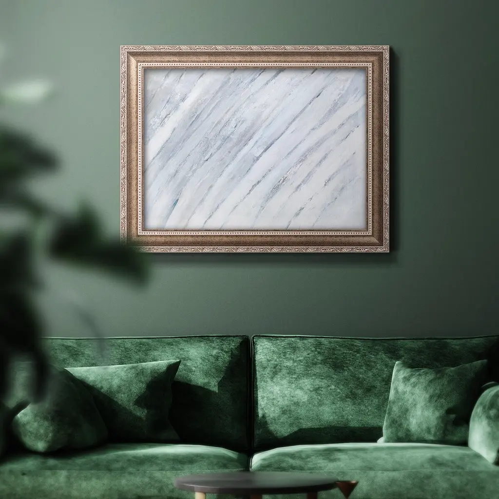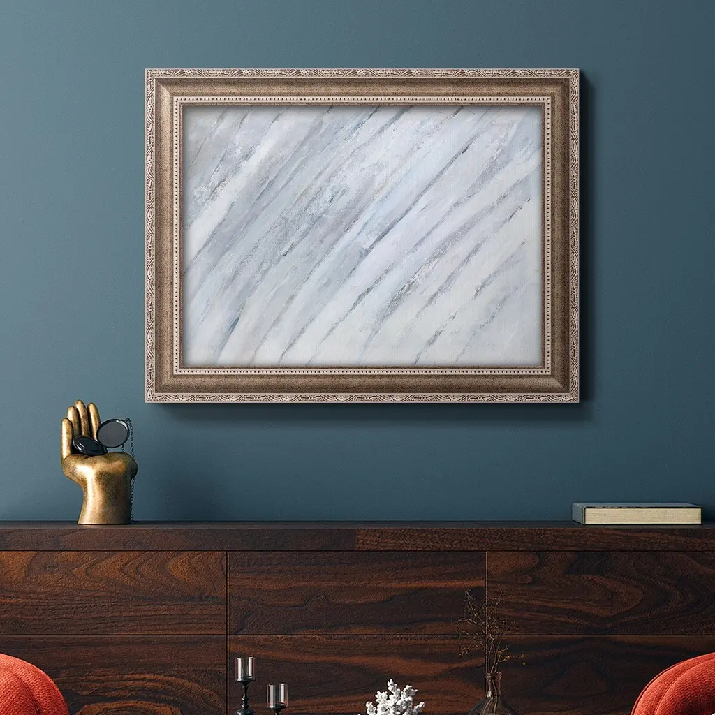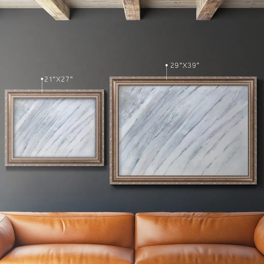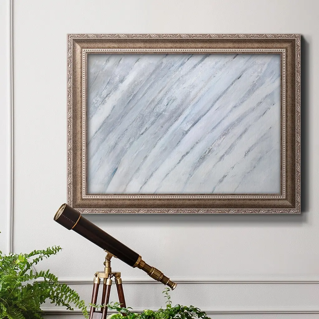 Soft Fronds I Premium Framed Canvas- Ready to Hang A Premium Framed Canvas created to last. Framed in distressed wood and available in an array of sizes and colors Featuring a beveled a solid wood stretcher bar, each piece comes ready to hand 3 SIZES AVAILABLE 16''X20'' - Overall Size 18'X27'' - Overall Size 24''x36'' - Overall Size Each piece is made to order. Each piece comes with hanging hardware. Made in the USA Ready to Hang Giclee Paper Print Acrylic Glass Beveled Matt Board