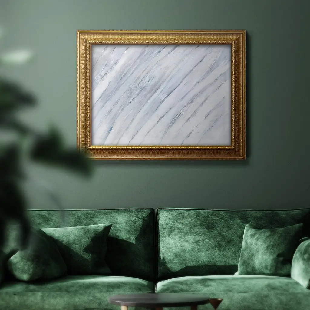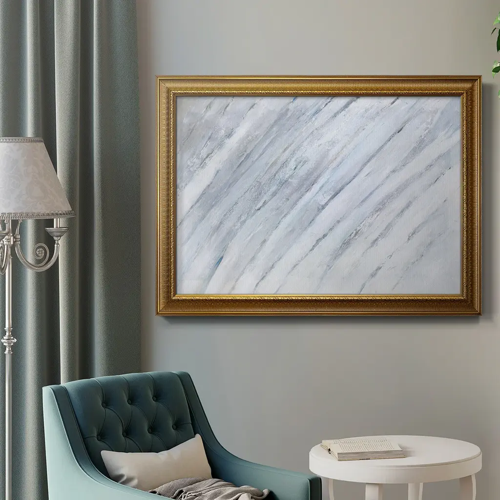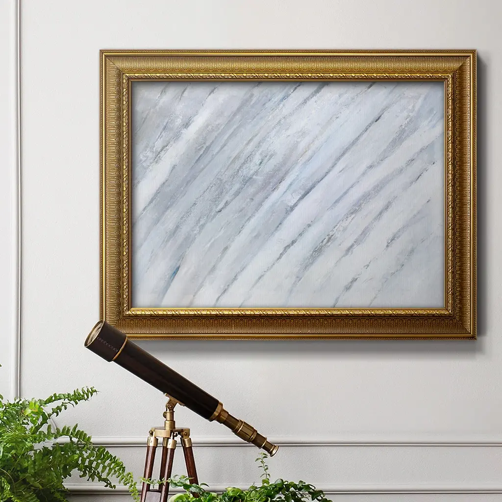 Soft Fronds I Premium Framed Canvas- Ready to Hang A Premium Framed Canvas created to last. Framed in distressed wood and available in an array of sizes and colors Featuring a beveled a solid wood stretcher bar, each piece comes ready to hand 3 SIZES AVAILABLE 16''X20'' - Overall Size 18'X27'' - Overall Size 24''x36'' - Overall Size Each piece is made to order. Each piece comes with hanging hardware. Made in the USA Ready to Hang Giclee Paper Print Acrylic Glass Beveled Matt Board