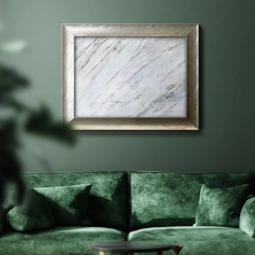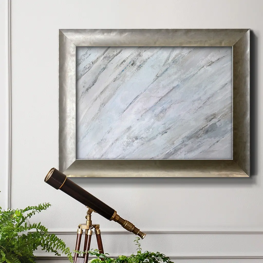 Soft Fronds II Premium Framed Canvas- Ready to Hang A Premium Framed Canvas created to last. Framed in distressed wood and available in an array of sizes and colors Featuring a beveled a solid wood stretcher bar, each piece comes ready to hand 3 SIZES AVAILABLE 16''X20'' - Overall Size 18'X27'' - Overall Size 24''x36'' - Overall Size Each piece is made to order. Each piece comes with hanging hardware. Made in the USA Ready to Hang Giclee Paper Print Acrylic Glass Beveled Matt Board