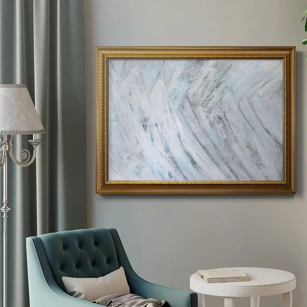 Soft Fronds III Premium Framed Canvas- Ready to Hang A Premium Framed Canvas created to last. Framed in distressed wood and available in an array of sizes and colors Featuring a beveled a solid wood stretcher bar, each piece comes ready to hand 3 SIZES AVAILABLE 16''X20'' - Overall Size 18'X27'' - Overall Size 24''x36'' - Overall Size Each piece is made to order. Each piece comes with hanging hardware. Made in the USA Ready to Hang Giclee Paper Print Acrylic Glass Beveled Matt Board