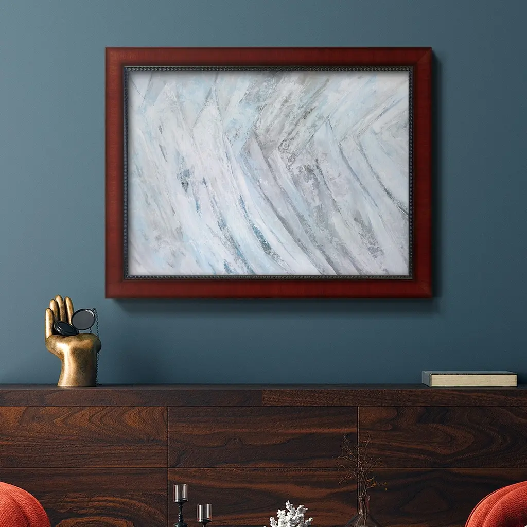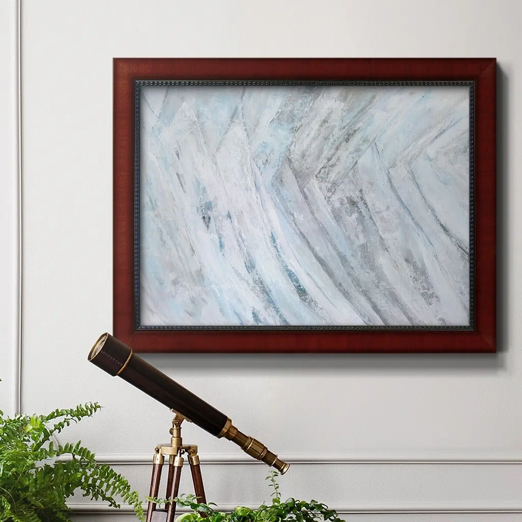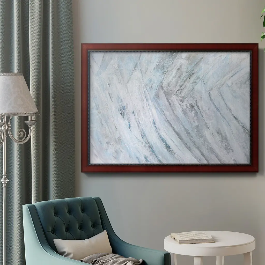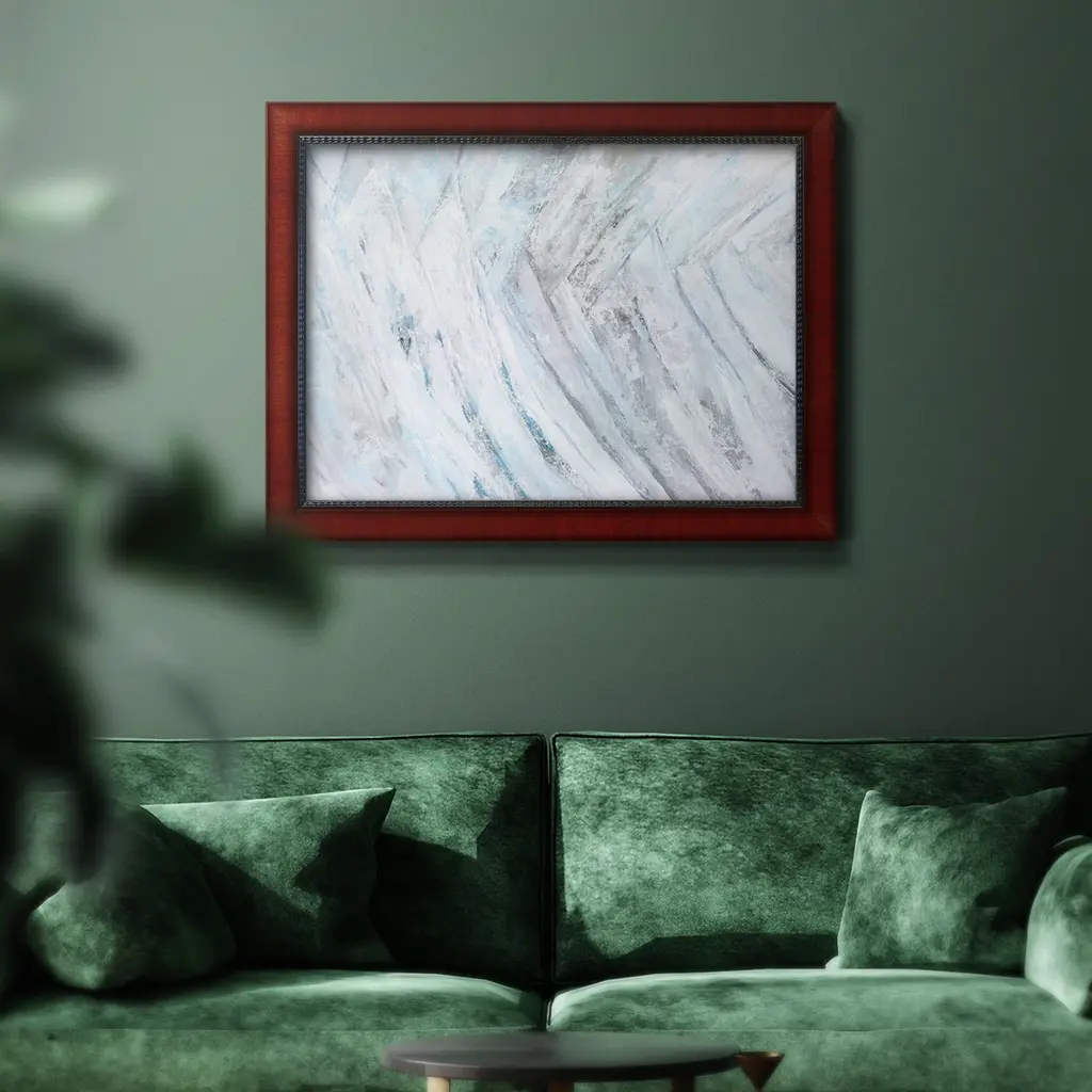Soft Fronds III Premium Framed Canvas- Ready to Hang A Premium Framed Canvas created to last. Framed in distressed wood and available in an array of sizes and colors Featuring a beveled a solid wood stretcher bar, each piece comes ready to hand 3 SIZES AVAILABLE 16''X20'' - Overall Size 18'X27'' - Overall Size 24''x36'' - Overall Size Each piece is made to order. Each piece comes with hanging hardware. Made in the USA Ready to Hang Giclee Paper Print Acrylic Glass Beveled Matt Board