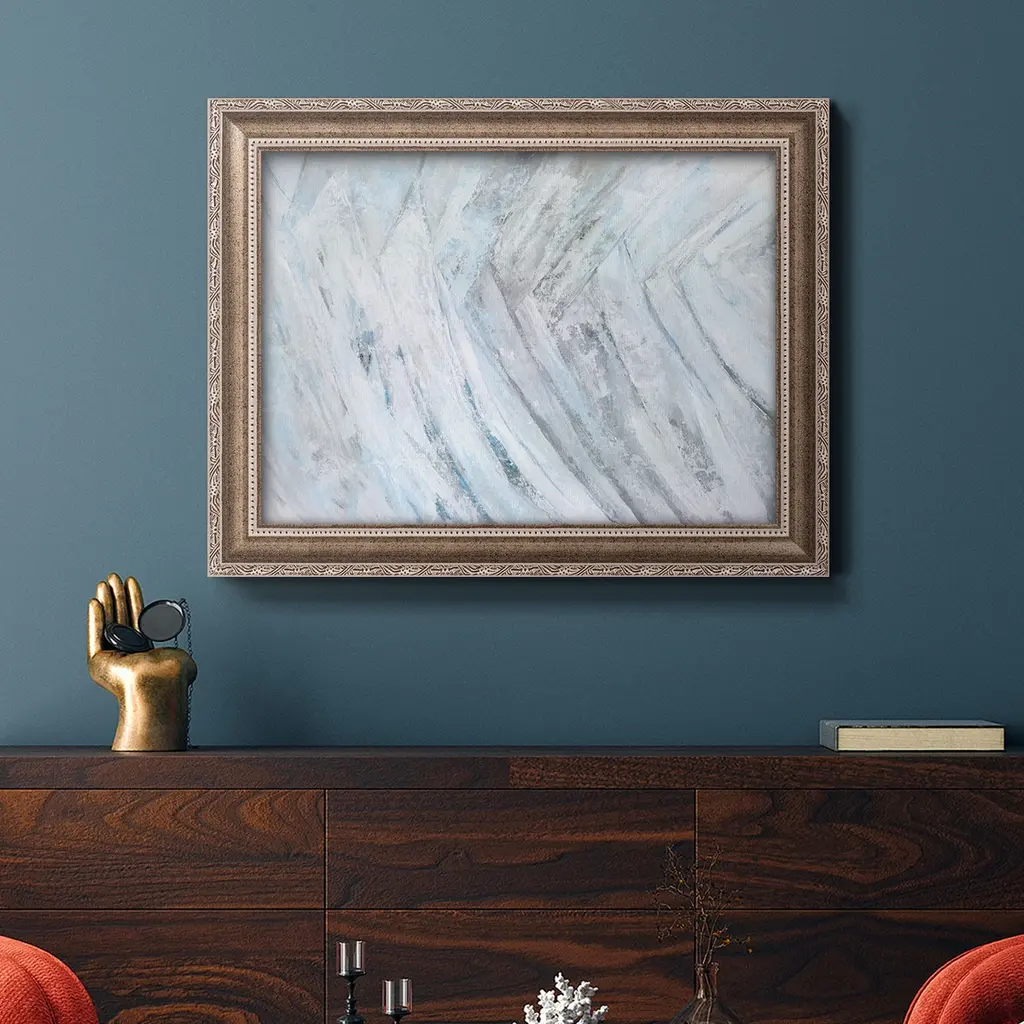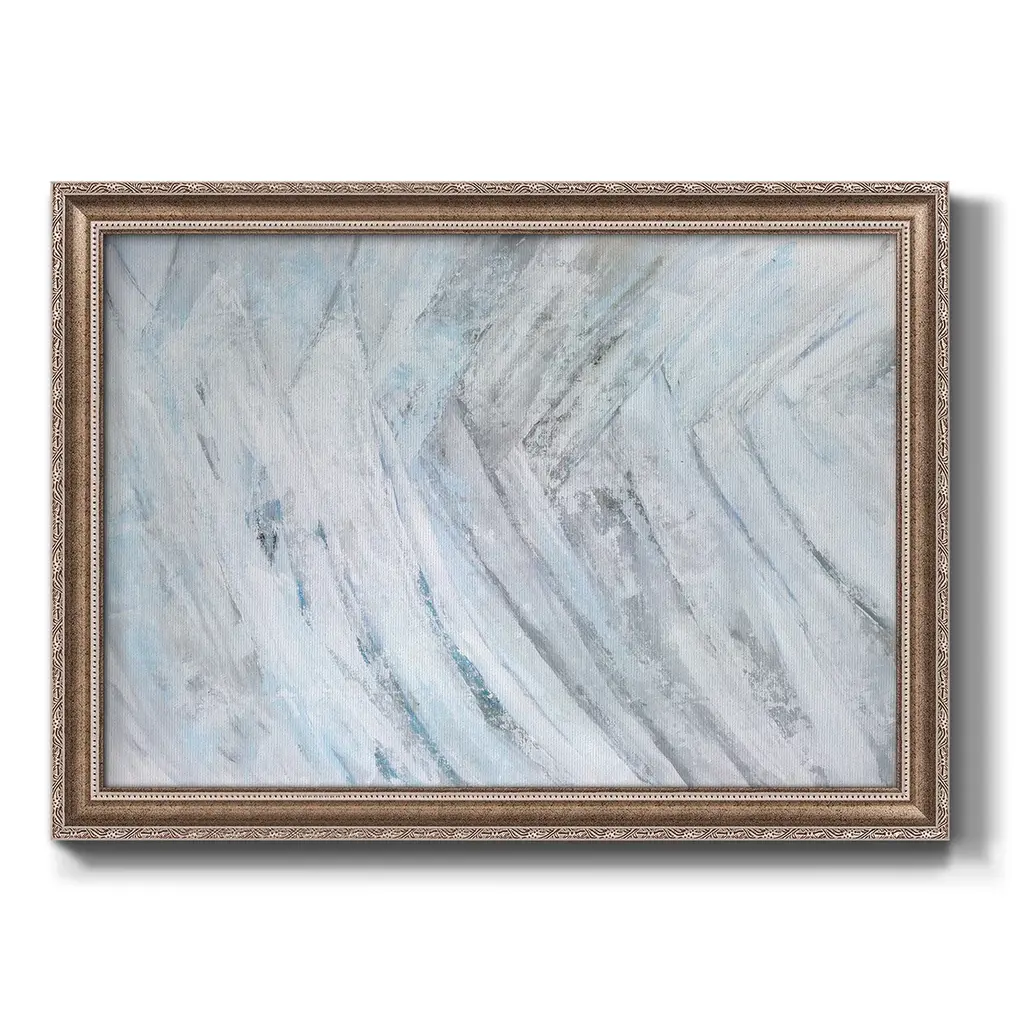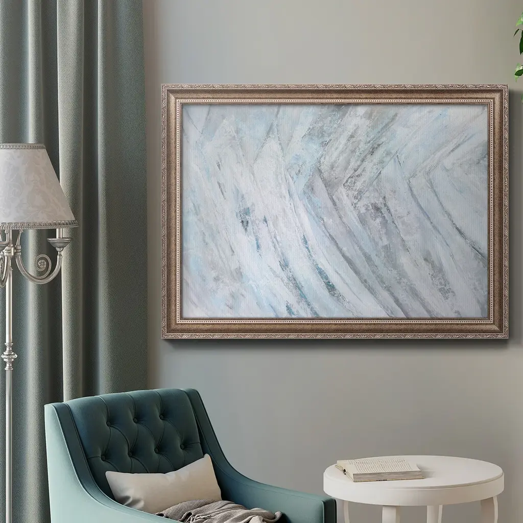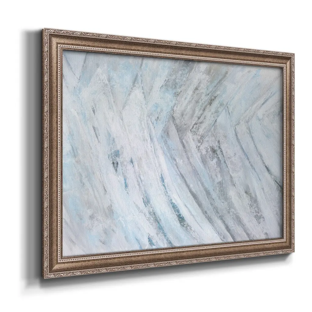 Soft Fronds III Premium Framed Canvas- Ready to Hang A Premium Framed Canvas created to last. Framed in distressed wood and available in an array of sizes and colors Featuring a beveled a solid wood stretcher bar, each piece comes ready to hand 3 SIZES AVAILABLE 16''X20'' - Overall Size 18'X27'' - Overall Size 24''x36'' - Overall Size Each piece is made to order. Each piece comes with hanging hardware. Made in the USA Ready to Hang Giclee Paper Print Acrylic Glass Beveled Matt Board