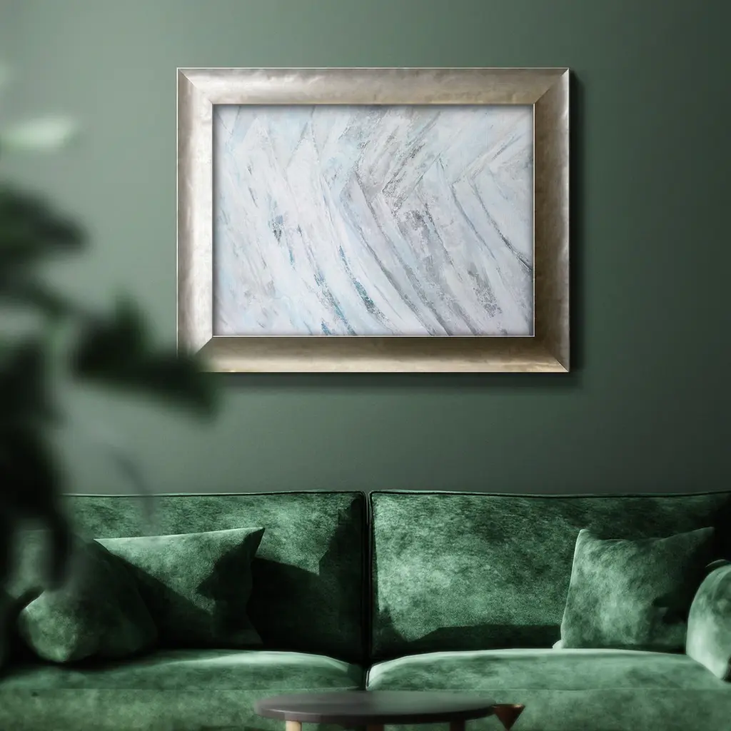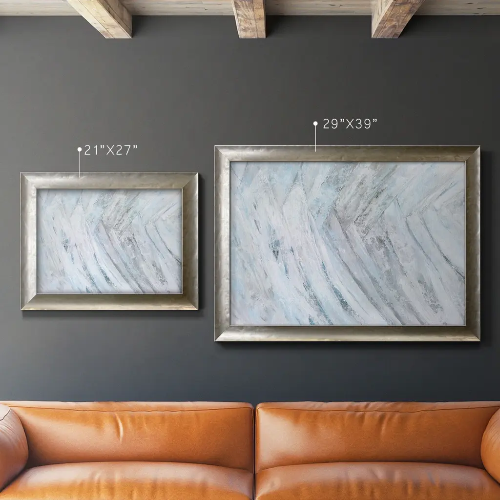 Soft Fronds III Premium Framed Canvas- Ready to Hang A Premium Framed Canvas created to last. Framed in distressed wood and available in an array of sizes and colors Featuring a beveled a solid wood stretcher bar, each piece comes ready to hand 3 SIZES AVAILABLE 16''X20'' - Overall Size 18'X27'' - Overall Size 24''x36'' - Overall Size Each piece is made to order. Each piece comes with hanging hardware. Made in the USA Ready to Hang Giclee Paper Print Acrylic Glass Beveled Matt Board