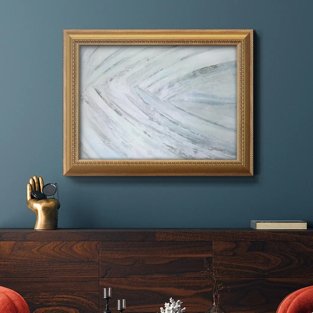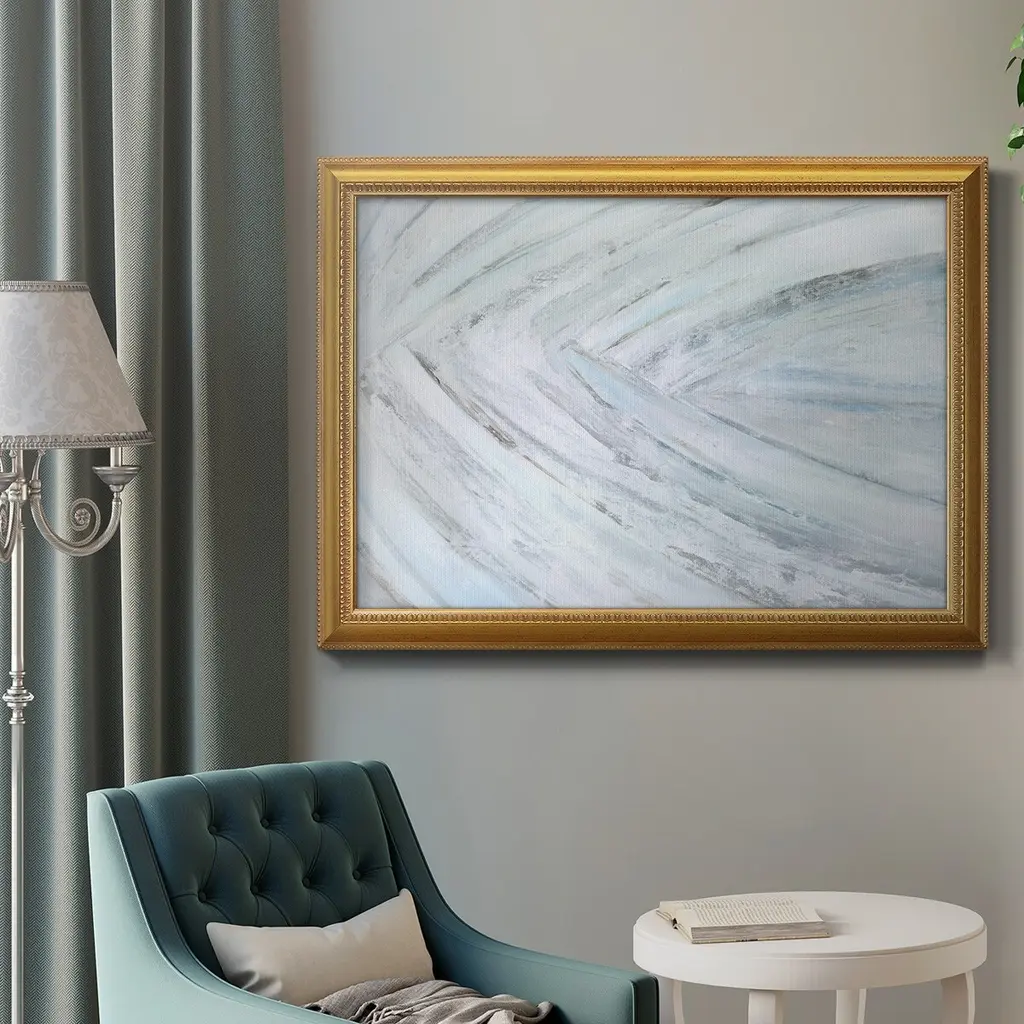 Soft Fronds IV Premium Framed Canvas- Ready to Hang A Premium Framed Canvas created to last. Framed in distressed wood and available in an array of sizes and colors Featuring a beveled a solid wood stretcher bar, each piece comes ready to hand 3 SIZES AVAILABLE 16''X20'' - Overall Size 18'X27'' - Overall Size 24''x36'' - Overall Size Each piece is made to order. Each piece comes with hanging hardware. Made in the USA Ready to Hang Giclee Paper Print Acrylic Glass Beveled Matt Board