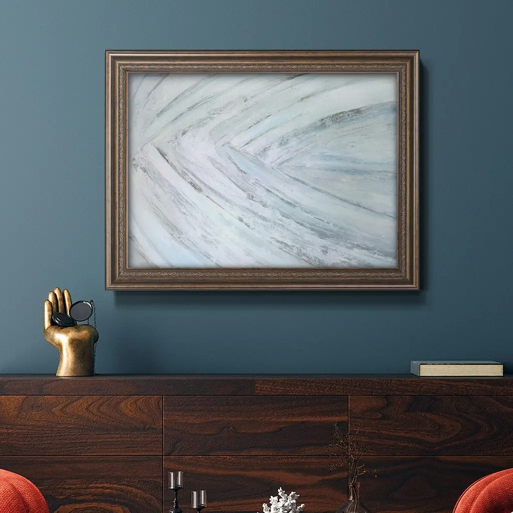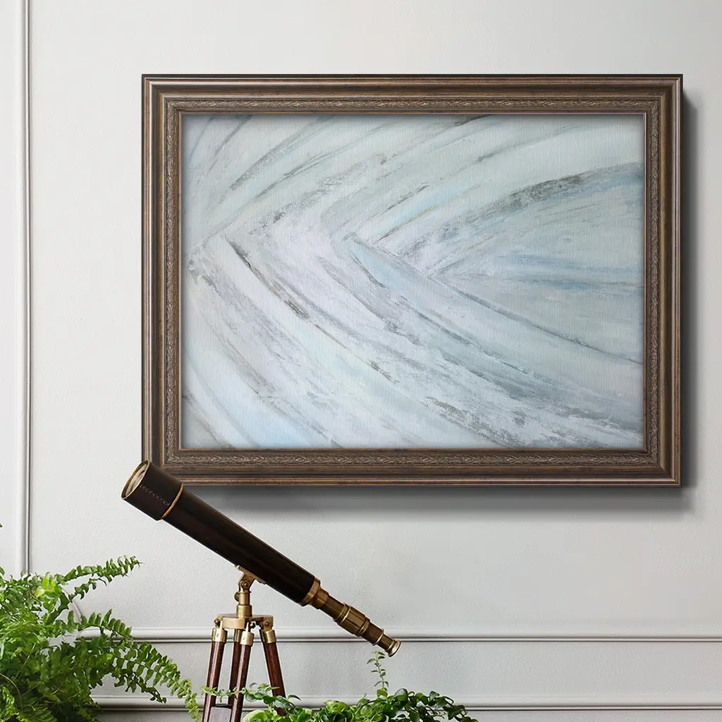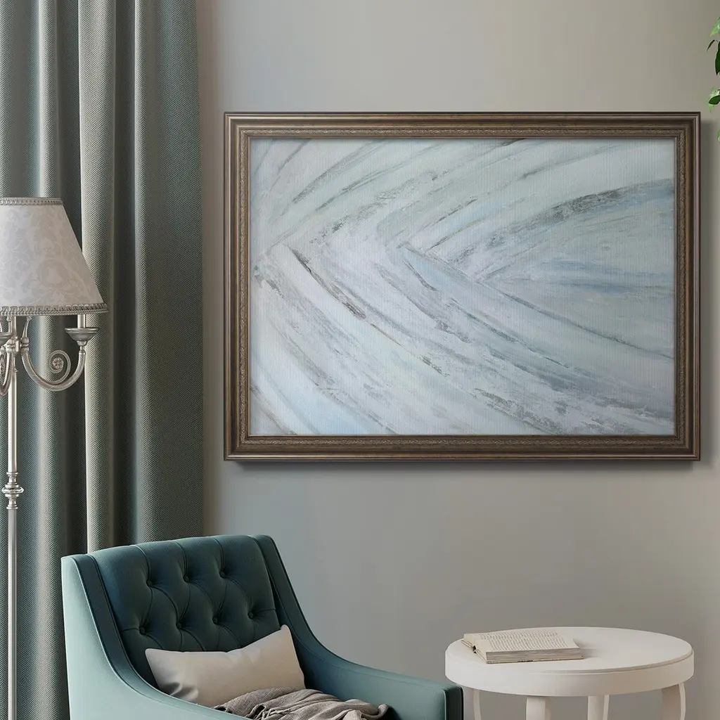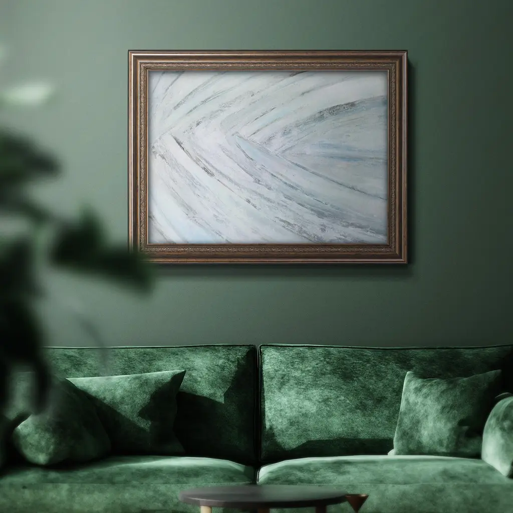 Soft Fronds IV Premium Framed Canvas- Ready to Hang A Premium Framed Canvas created to last. Framed in distressed wood and available in an array of sizes and colors Featuring a beveled a solid wood stretcher bar, each piece comes ready to hand 3 SIZES AVAILABLE 16''X20'' - Overall Size 18'X27'' - Overall Size 24''x36'' - Overall Size Each piece is made to order. Each piece comes with hanging hardware. Made in the USA Ready to Hang Giclee Paper Print Acrylic Glass Beveled Matt Board