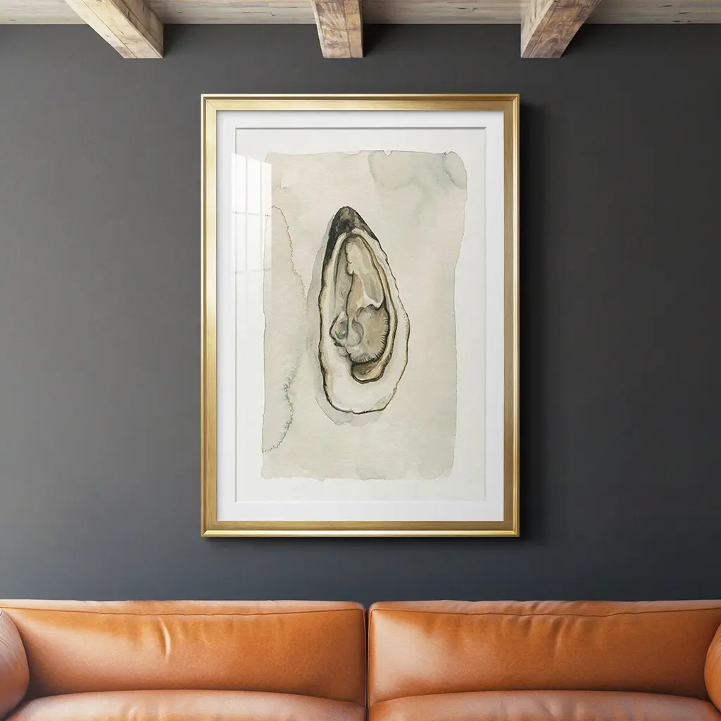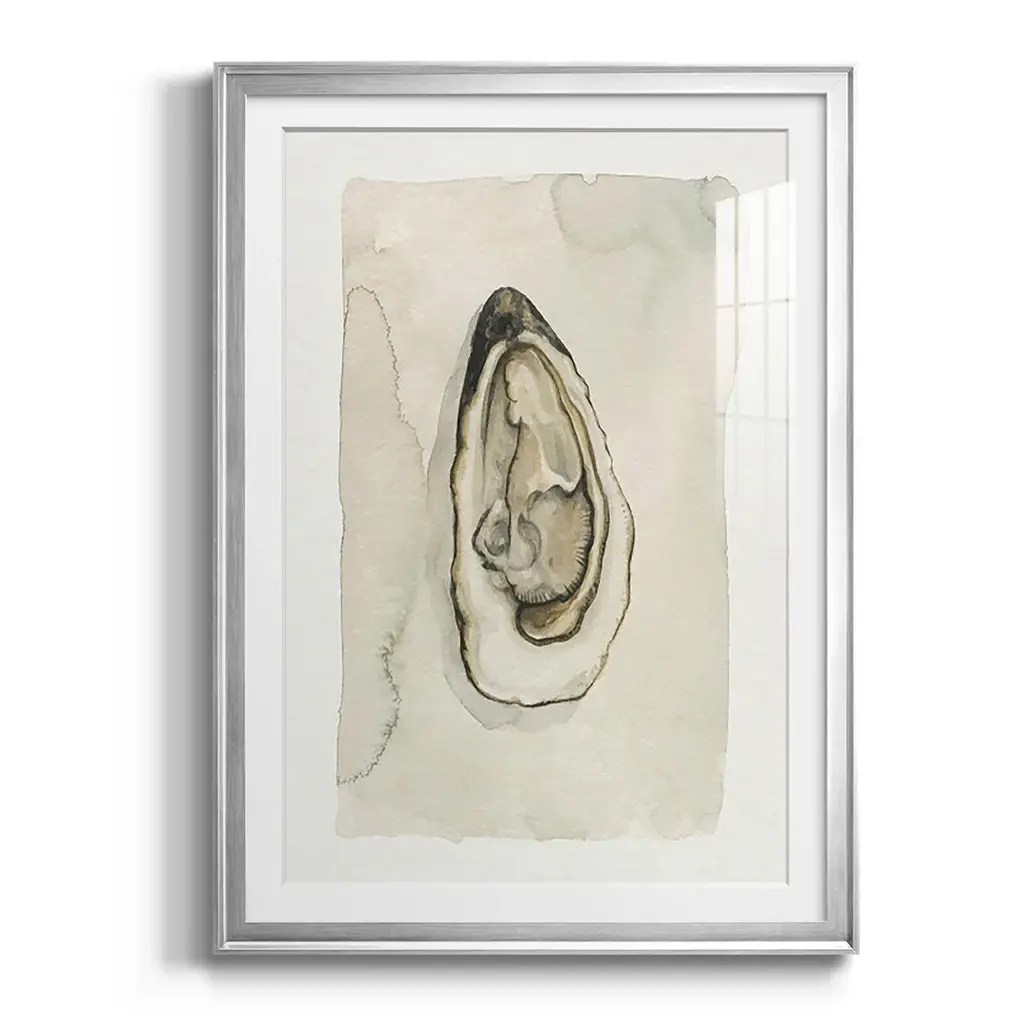 Soft Half Shell I Premium Framed Print - Ready to Hang A Premium Framed Print created to last. Framed in distressed wood and available in an array of sizes and colors Featuring a beveled a solid wood stretcher bar, each piece comes ready to hand 4 SIZES AVAILABLE 30.5''X42.5'' - Overall Size 26.5'X36.5'' - Overall Size 22.5''x30.5'' - Overall Size 18.5''x24.5'' - Overall Size Each piece is made to order. Each piece comes with hanging hardware. Made in the USA Ready to Hang Giclee Paper Print Acrylic Glass Beveled Matt Board