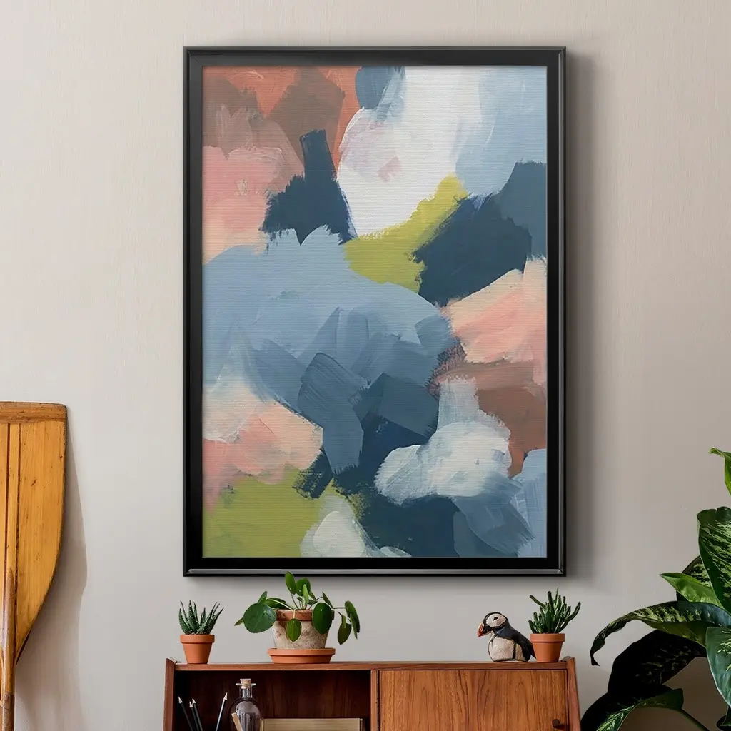 Soft Indigo Atmosphere I Premium Framed Print - Ready to Hang A Premium Framed Print created to last. Framed in distressed wood and available in an array of sizes and colors Featuring a beveled a solid wood stretcher bar, each piece comes ready to hand 4 SIZES AVAILABLE 30.5''X42.5'' - Overall Size 26.5'X36.5'' - Overall Size 22.5''x30.5'' - Overall Size 18.5''x24.5'' - Overall Size Each piece is made to order. Each piece comes with hanging hardware. Made in the USA Ready to Hang