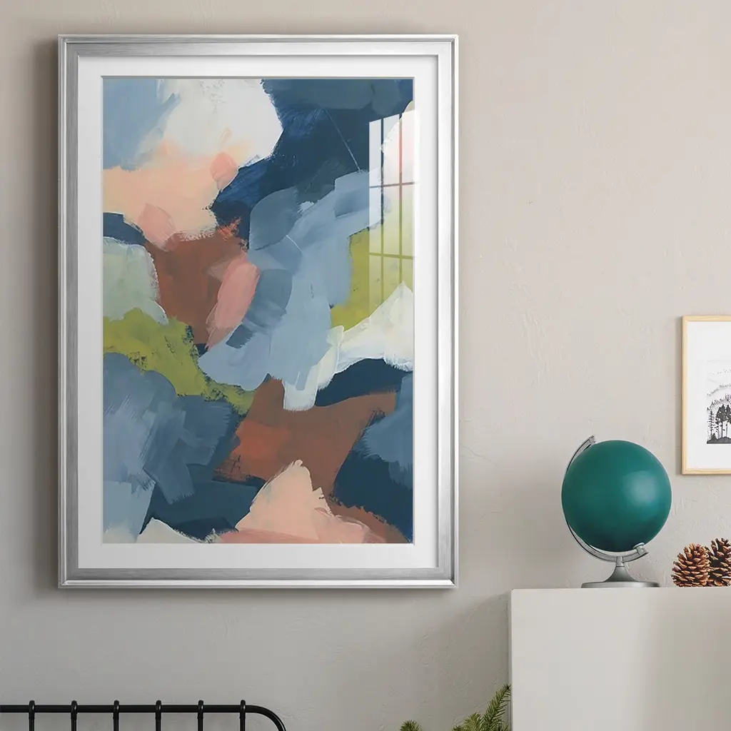 Soft Indigo Atmosphere II Premium Framed Print - Ready to Hang A Premium Framed Print created to last. Framed in distressed wood and available in an array of sizes and colors Featuring a beveled a solid wood stretcher bar, each piece comes ready to hand 4 SIZES AVAILABLE 30.5''X42.5'' - Overall Size 26.5'X36.5'' - Overall Size 22.5''x30.5'' - Overall Size 18.5''x24.5'' - Overall Size Each piece is made to order. Each piece comes with hanging hardware. Made in the USA Ready to Hang Giclee Paper Print Acrylic Glass Beveled Matt Board