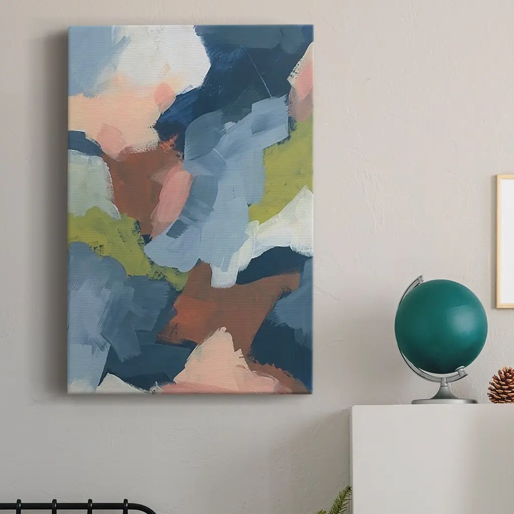 Soft Indigo Atmosphere II Premium Gallery Wrapped Canvas - Ready to Hang A premium hand stretched gallery wrapped canvas print created to last. Featuring a beveled a solid wood stretcher bar, each piece comes ready to hand 6 SIZES AVAILABLE 8''X12'' - Overall Size 12''X18'' - Overall Size 18''X27'' - Overall Size 24''x36'' - Overall Size 32''x48'' - Overall Size 40''x60'' - Overall Size Each piece is made to order. Built to Last Each piece comes ready to hang Solid wood stretcher Fade and Water resistant Made domestically