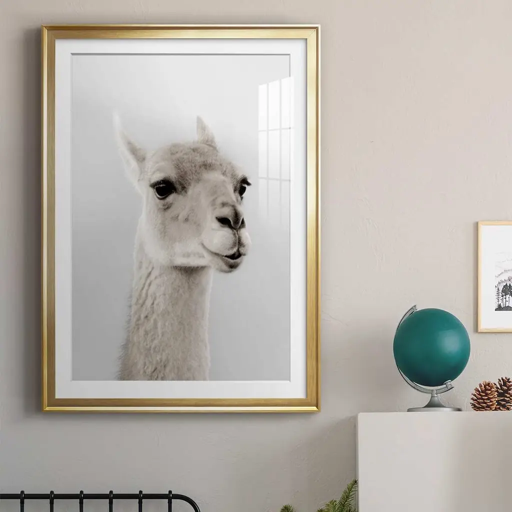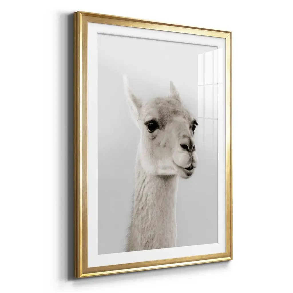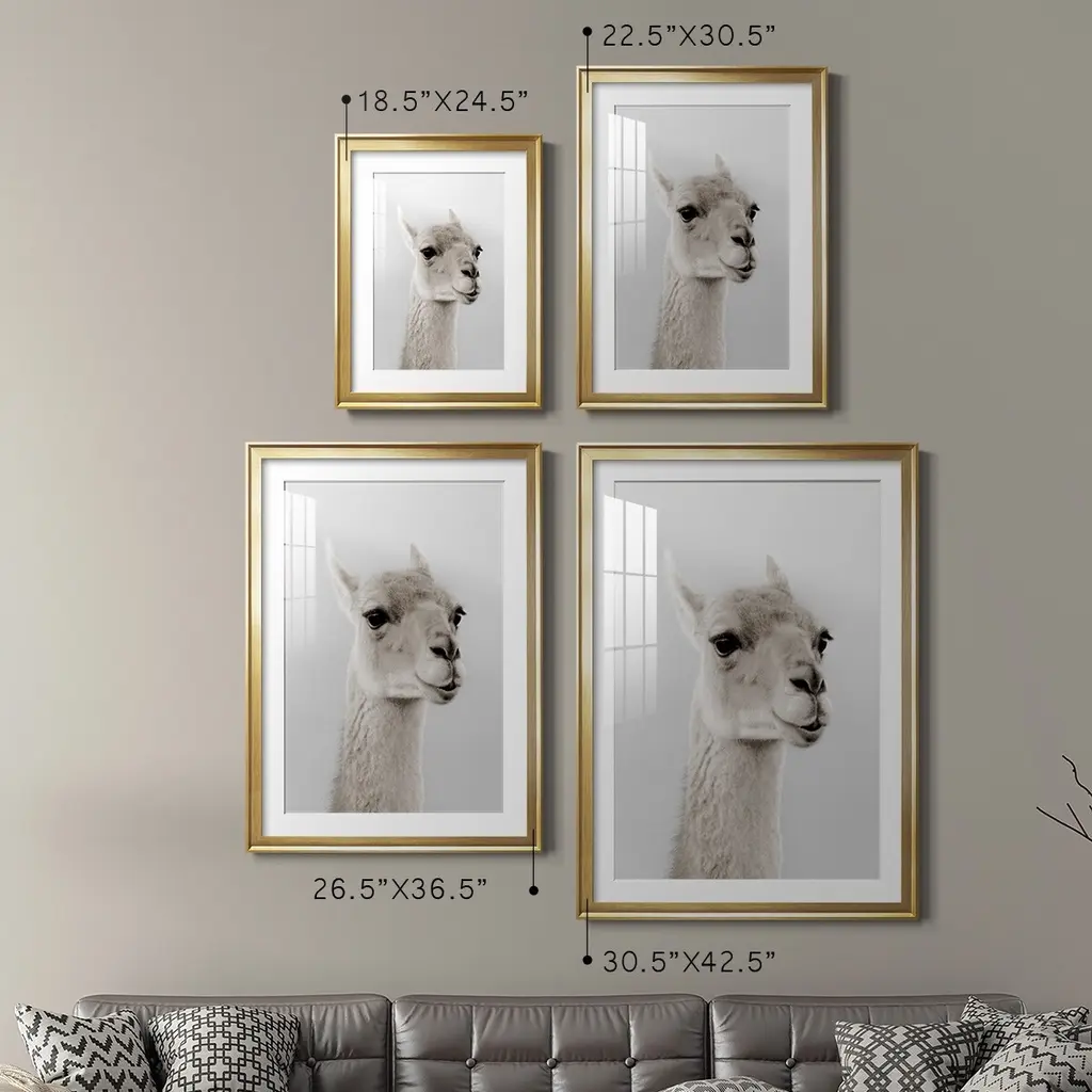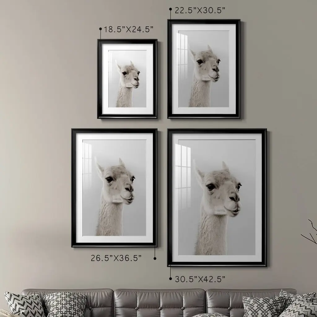 Soft Llama Premium Framed Print - Ready to Hang A Premium Framed Print created to last. Framed in distressed wood and available in an array of sizes and colors Featuring a beveled a solid wood stretcher bar, each piece comes ready to hand 4 SIZES AVAILABLE 30.5''X42.5'' - Overall Size 26.5'X36.5'' - Overall Size 22.5''x30.5'' - Overall Size 18.5''x24.5'' - Overall Size Each piece is made to order. Each piece comes with hanging hardware. Made in the USA Ready to Hang Giclee Paper Print Acrylic Glass Beveled Matt Board