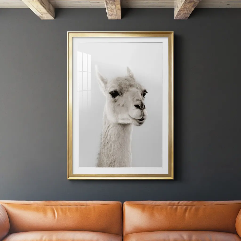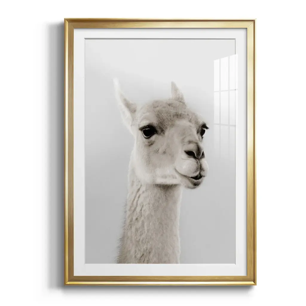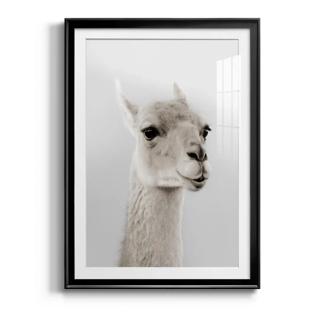 Soft Llama Premium Framed Print - Ready to Hang A Premium Framed Print created to last. Framed in distressed wood and available in an array of sizes and colors Featuring a beveled a solid wood stretcher bar, each piece comes ready to hand 4 SIZES AVAILABLE 30.5''X42.5'' - Overall Size 26.5'X36.5'' - Overall Size 22.5''x30.5'' - Overall Size 18.5''x24.5'' - Overall Size Each piece is made to order. Each piece comes with hanging hardware. Made in the USA Ready to Hang Giclee Paper Print Acrylic Glass Beveled Matt Board