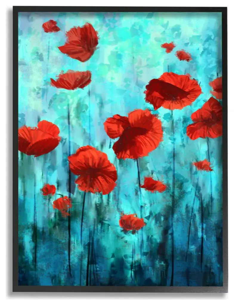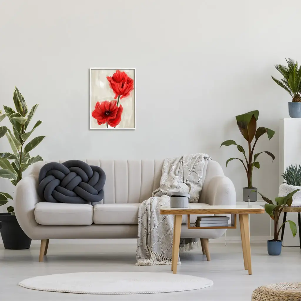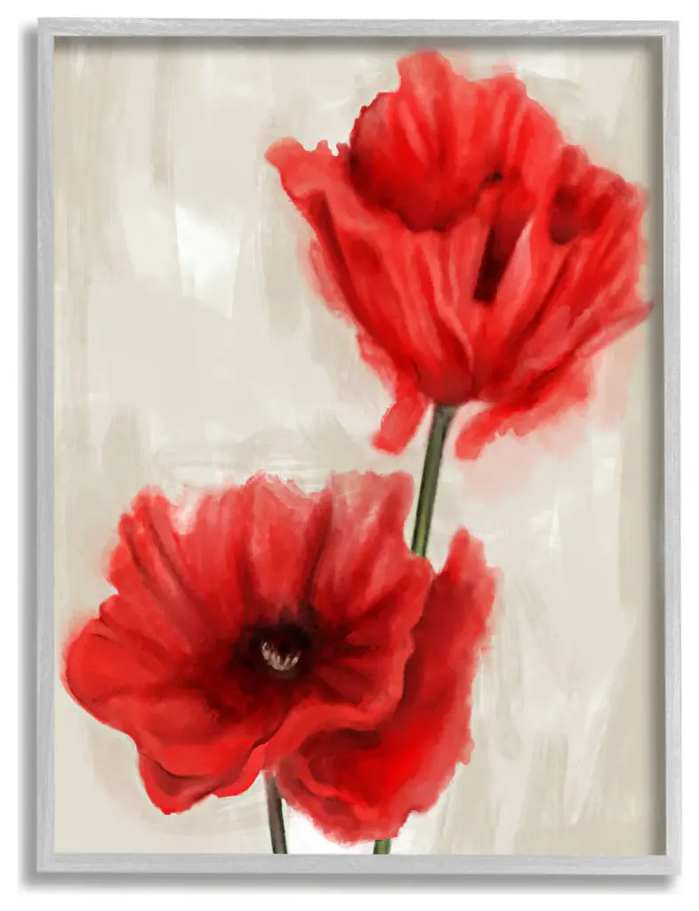 Soft Petal Poppies Red Beige Floral Painting, 16 X 20