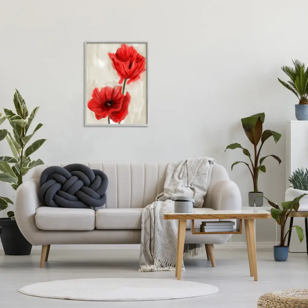 Soft Petal Poppies Red Beige Floral Painting, 24 X 30