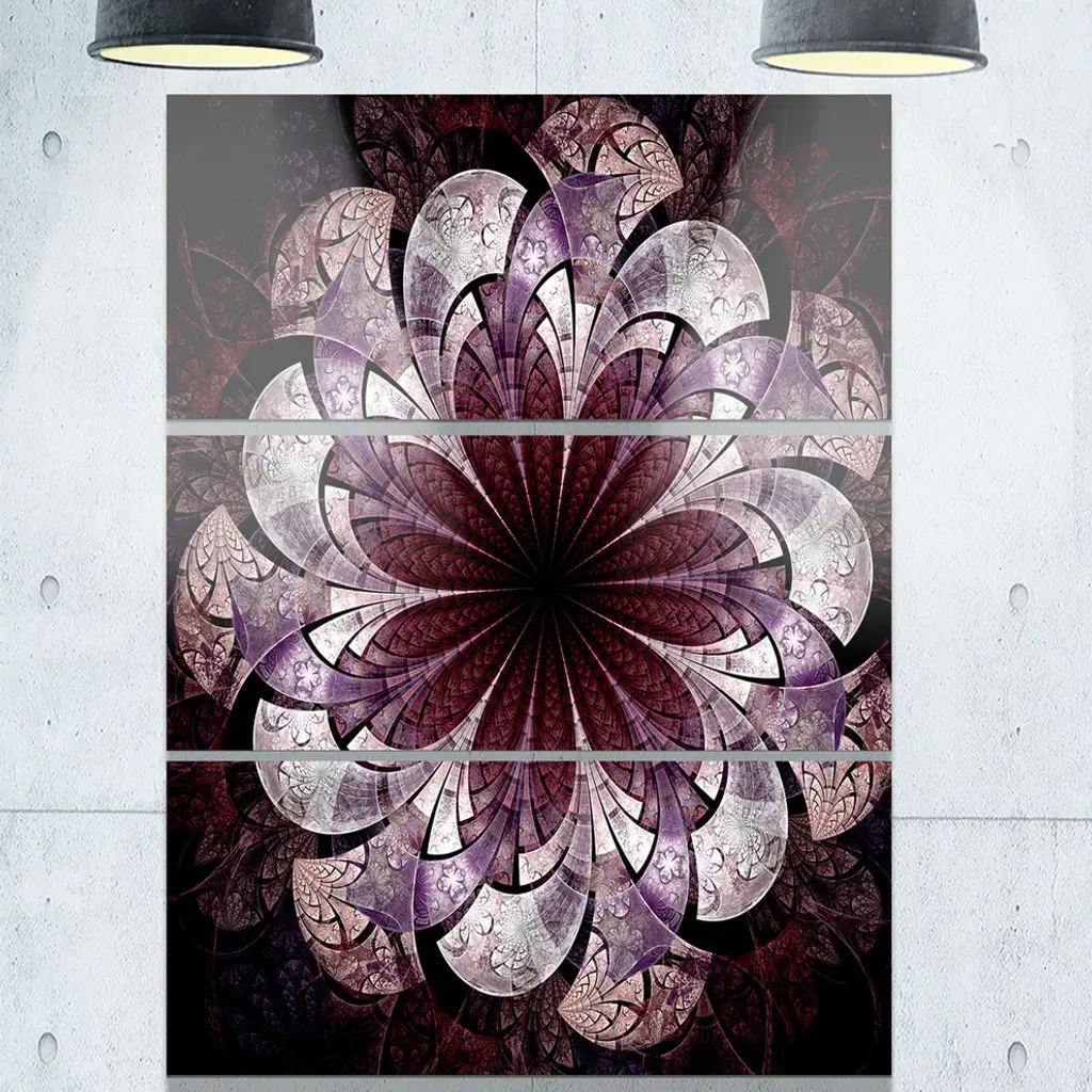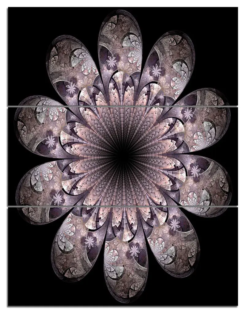"Soft Pink Digital Art Fractal Flower" Metal Wall Art, 3 Panels, 28"x36"
