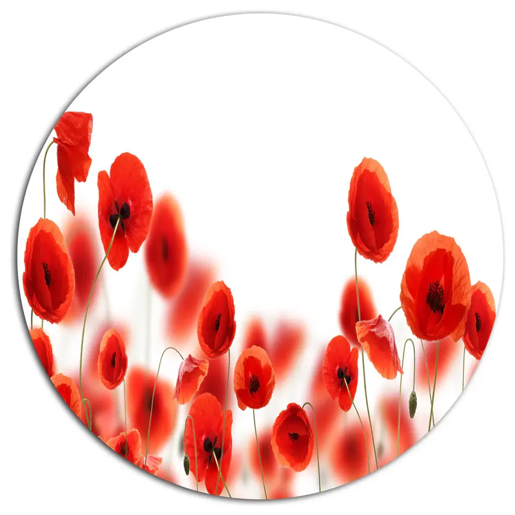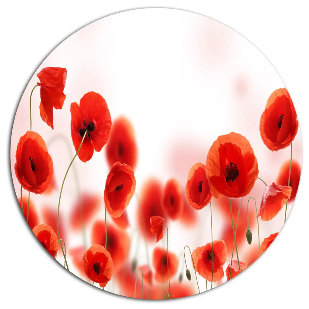 Bring Contemporary Abstraction to your home with this large Circle Metal wall art. This Soft Poppy Flowers Petals View Metal Artwork makes it the focal point of any room or office. - White Gloss Coating ensures colors are extra vibrant with light reflection.- Aluminum grade Sheet Metal with 1 inch mounting frame on the back giving the illusion that the artwork is floating on the wall..- Mounting Brackets are included along with instructions.- High Quality Digital images are created directly into a glossy aluminum panel producing a stunning and captivating print into the glossy finish of the metal.- Water, Fire and Scratch resistant HD Aluminum panels.- Looks better than any photo paper and guaranteed to last at least 20 years- Easy to clean with a microfiber cloth. Colors are far superior to regular Canvas Art. - Easy to Hang