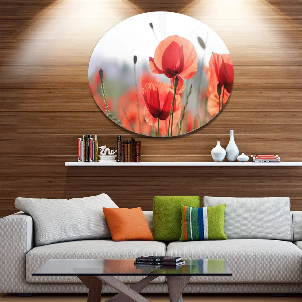 Soft Poppy Flowers Petals View, Modern Floral Round Wall Art, 36"