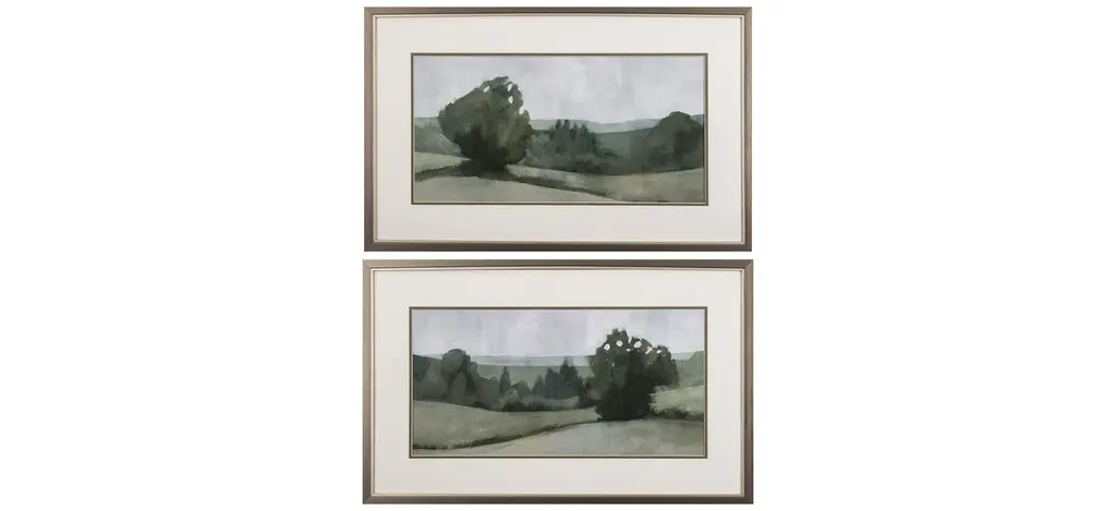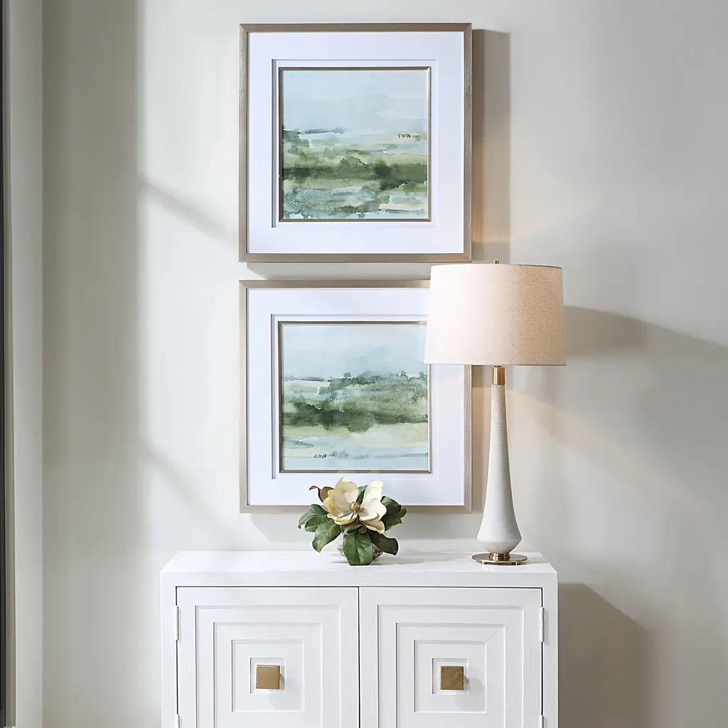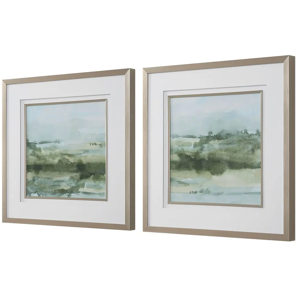 Soft Sage 28 X 28 Inch Abstract Landscape Prints, Set Of 2
