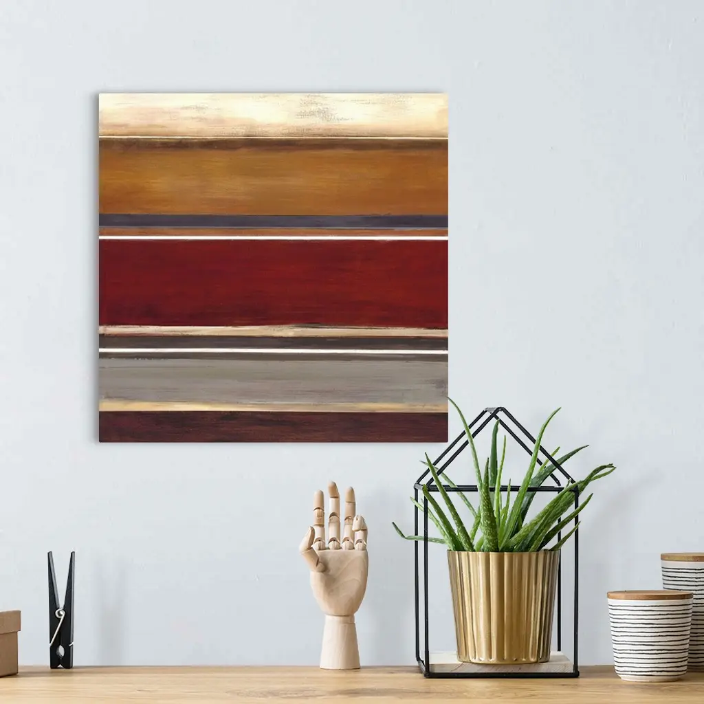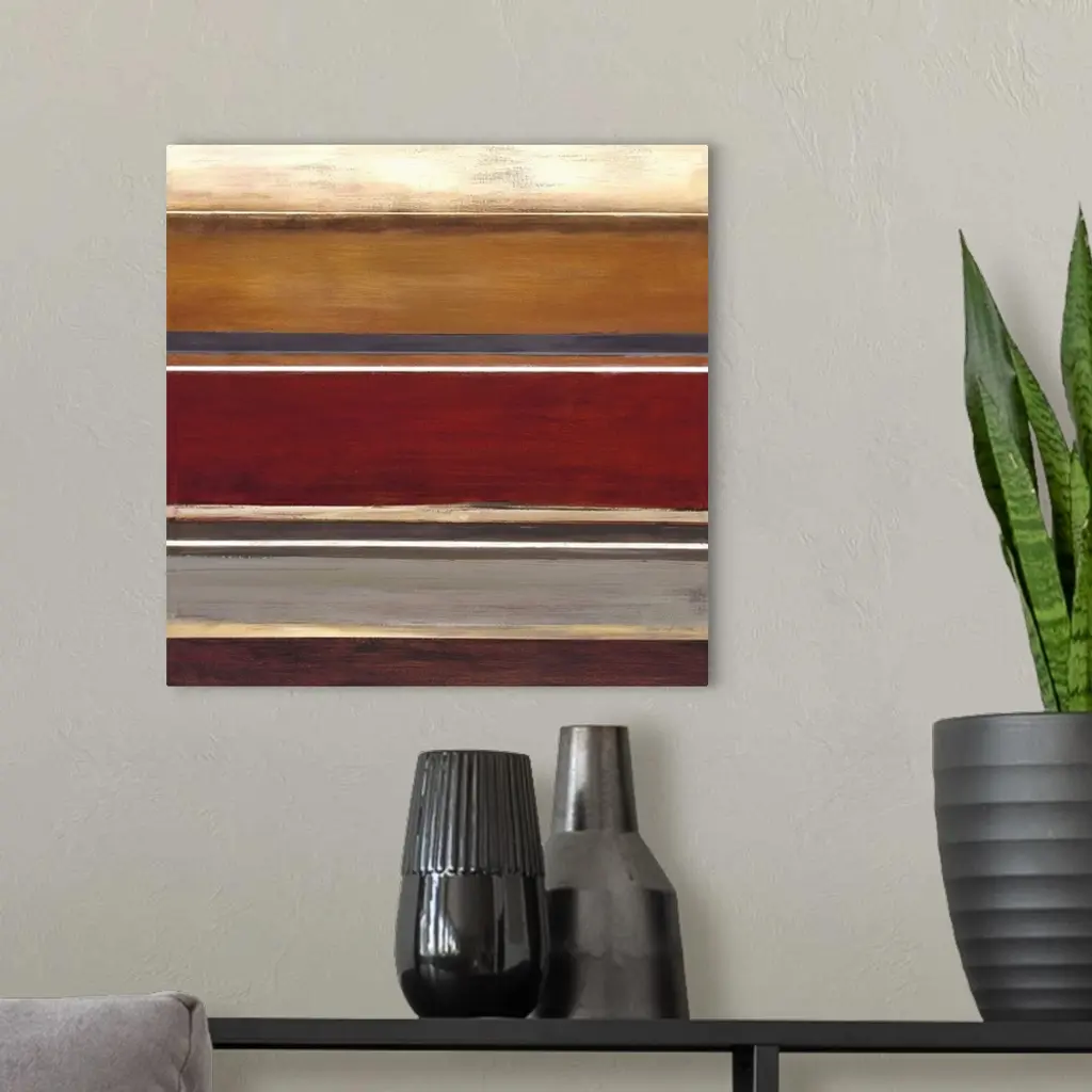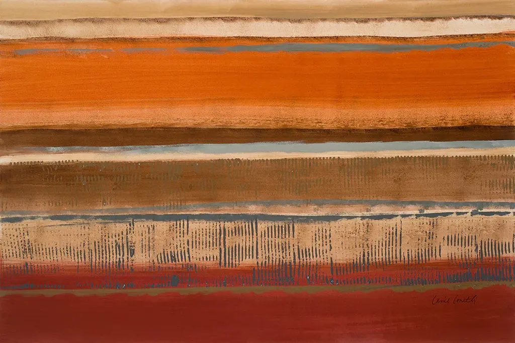 Contemporary earthy toned abstract painting of horizontal stripes in different widths.