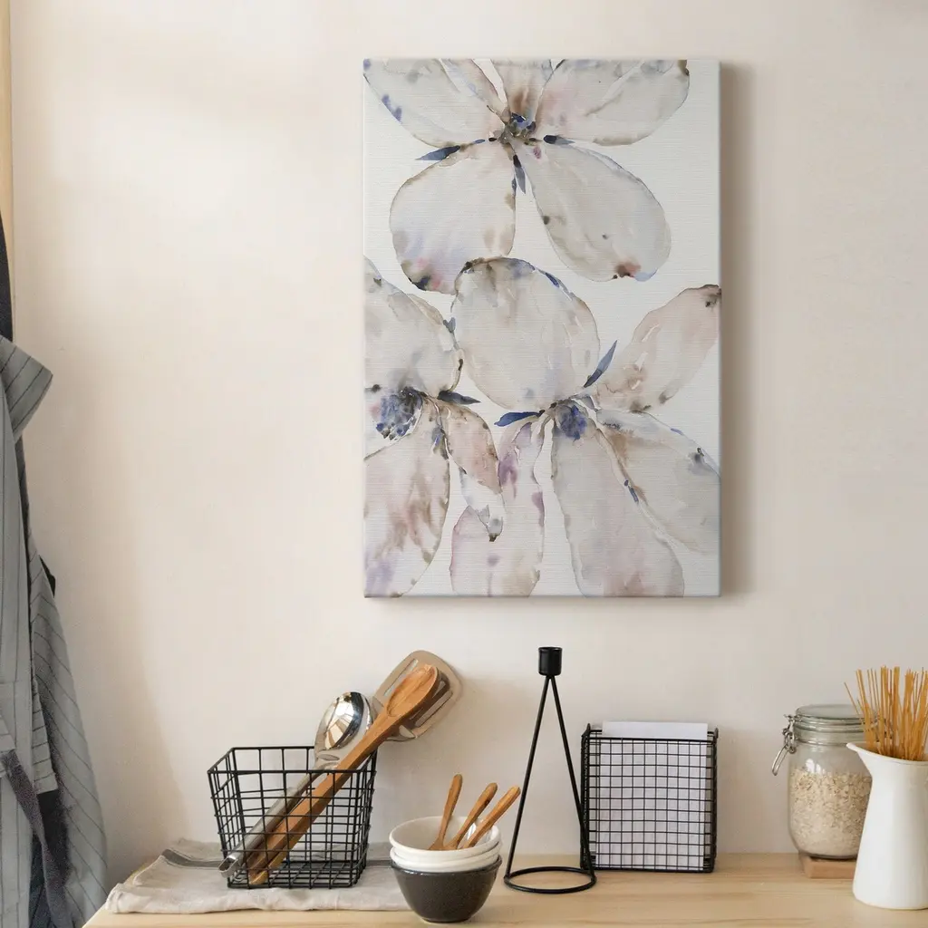 Soft Wind Flowers II Premium Gallery Wrapped Canvas - Ready to Hang A premium hand stretched gallery wrapped canvas print created to last. Featuring a beveled a solid wood stretcher bar, each piece comes ready to hand 6 SIZES AVAILABLE 8''X12'' - Overall Size 12''X18'' - Overall Size 18''X27'' - Overall Size 24''x36'' - Overall Size 32''x48'' - Overall Size 40''x60'' - Overall Size Each piece is made to order. Built to Last Each piece comes ready to hang Solid wood stretcher Fade and Water resistant Made domestically