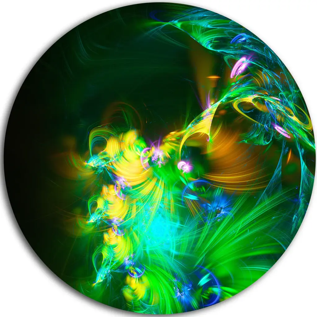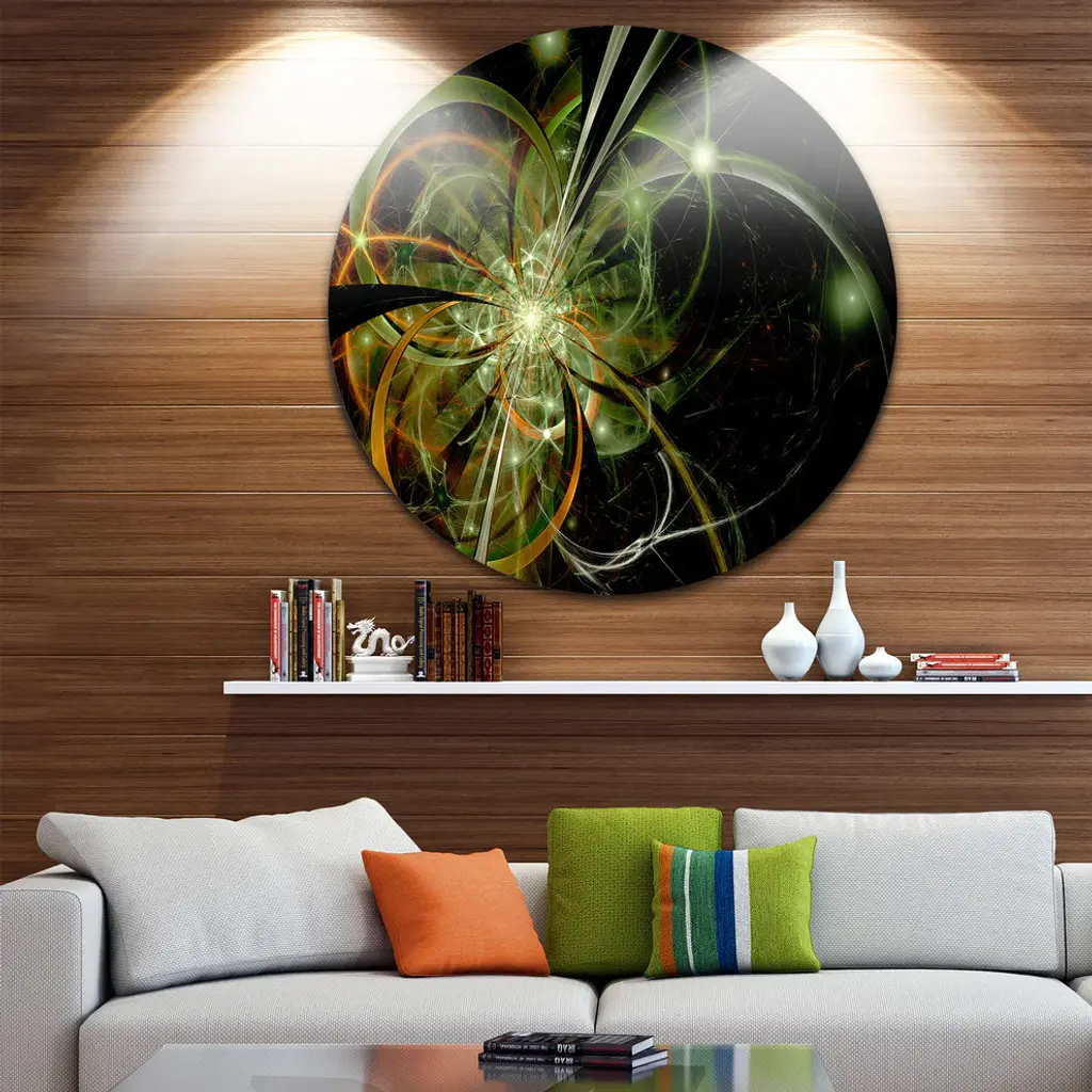 Bring Contemporary Abstraction to your home with this large Circle Metal wall art. This Soft Yellow Fractal Flower Design Metal Artwork makes it the focal point of any room or office. - White Gloss Coating ensures colors are extra vibrant with light reflection.- Aluminum grade Sheet Metal with 1 inch mounting frame on the back giving the illusion that the artwork is floating on the wall..- Mounting Brackets are included along with instructions.- High Quality Digital images are created directly into a glossy aluminum panel producing a stunning and captivating print into the glossy finish of the metal.- Water, Fire and Scratch resistant HD Aluminum panels.- Looks better than any photo paper and guaranteed to last at least 20 years- Easy to clean with a microfiber cloth. Colors are far superior to regular Canvas Art. - Easy to Hang
