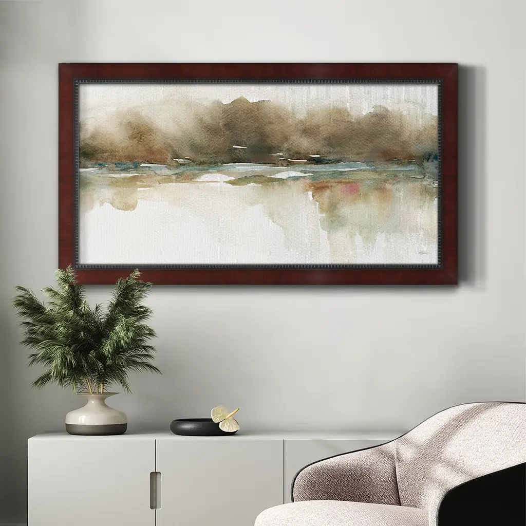 Softer Reflections Premium Framed Canvas- Ready to Hang A Premium Framed Canvas created to last. Framed in distressed wood and available in an array of sizes and colors Featuring a beveled a solid wood stretcher bar, each piece comes ready to hand 3 SIZES AVAILABLE 21''X37'' - Overall Size 25''X45'' - Overall Size 29''x53'' - Overall Size Each piece is made to order. Each piece comes with hanging hardware. Made in the USA Ready to Hang Giclee Paper Print Acrylic Glass Beveled Matt Board