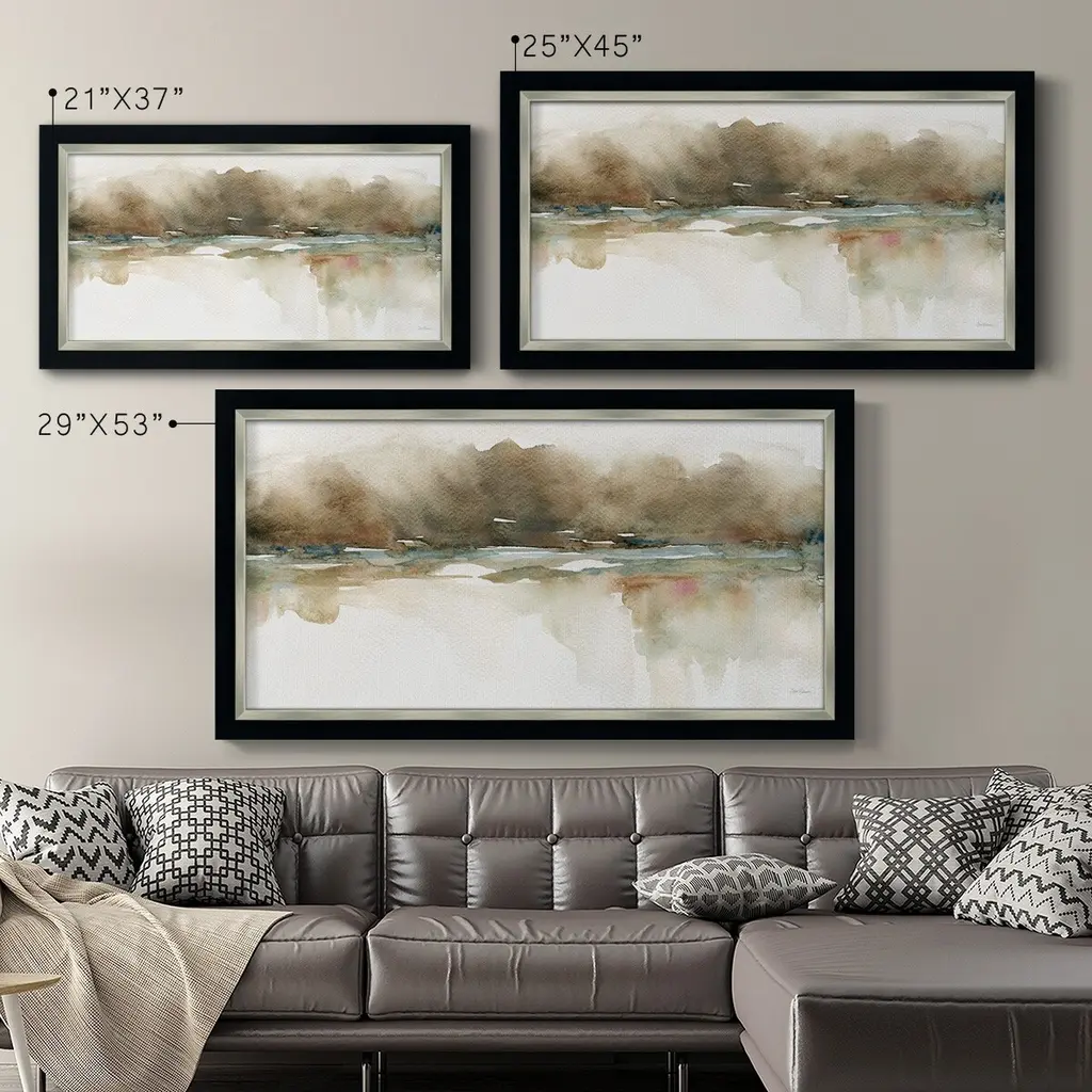 Softer Reflections Premium Framed Canvas- Ready to Hang A Premium Framed Canvas created to last. Framed in distressed wood and available in an array of sizes and colors Featuring a beveled a solid wood stretcher bar, each piece comes ready to hand 3 SIZES AVAILABLE 21''X37'' - Overall Size 25''X45'' - Overall Size 29''x53'' - Overall Size Each piece is made to order. Each piece comes with hanging hardware. Made in the USA Ready to Hang Giclee Paper Print Acrylic Glass Beveled Matt Board