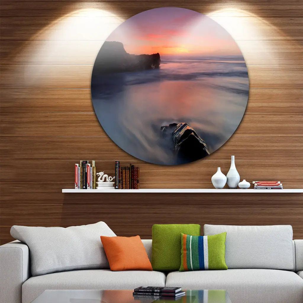 Bring Contemporary Abstraction to your home with this large Circle Metal wall art. This Softness in the Tide Magoito Beach Metal Artwork makes it the focal point of any room or office. - White Gloss Coating ensures colors are extra vibrant with light reflection.- Aluminum grade Sheet Metal with 1 inch mounting frame on the back giving the illusion that the artwork is floating on the wall..- Mounting Brackets are included along with instructions.- High Quality Digital images are created directly into a glossy aluminum panel producing a stunning and captivating print into the glossy finish of the metal.- Water, Fire and Scratch resistant HD Aluminum panels.- Looks better than any photo paper and guaranteed to last at least 20 years- Easy to clean with a microfiber cloth. Colors are far superior to regular Canvas Art. - Easy to Hang