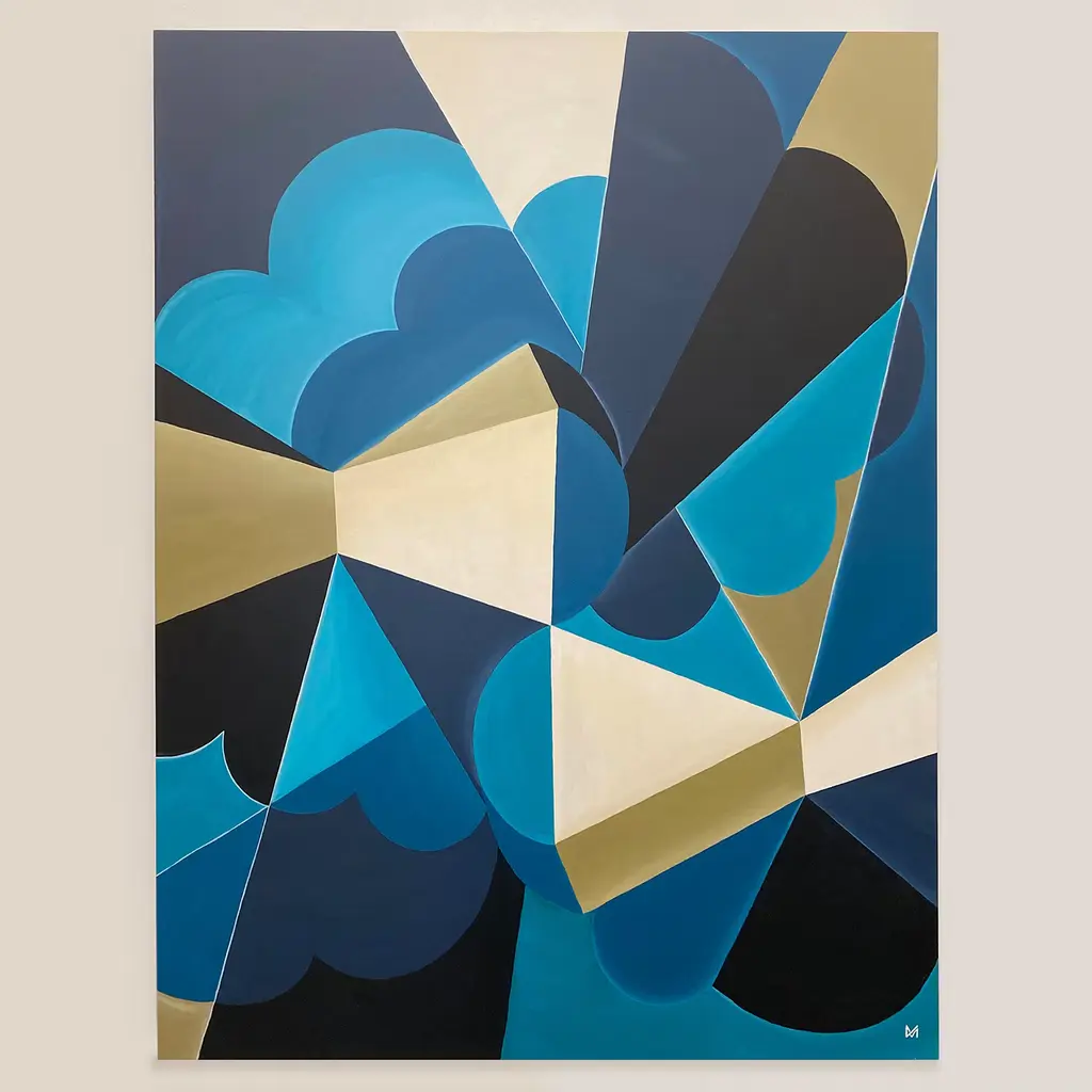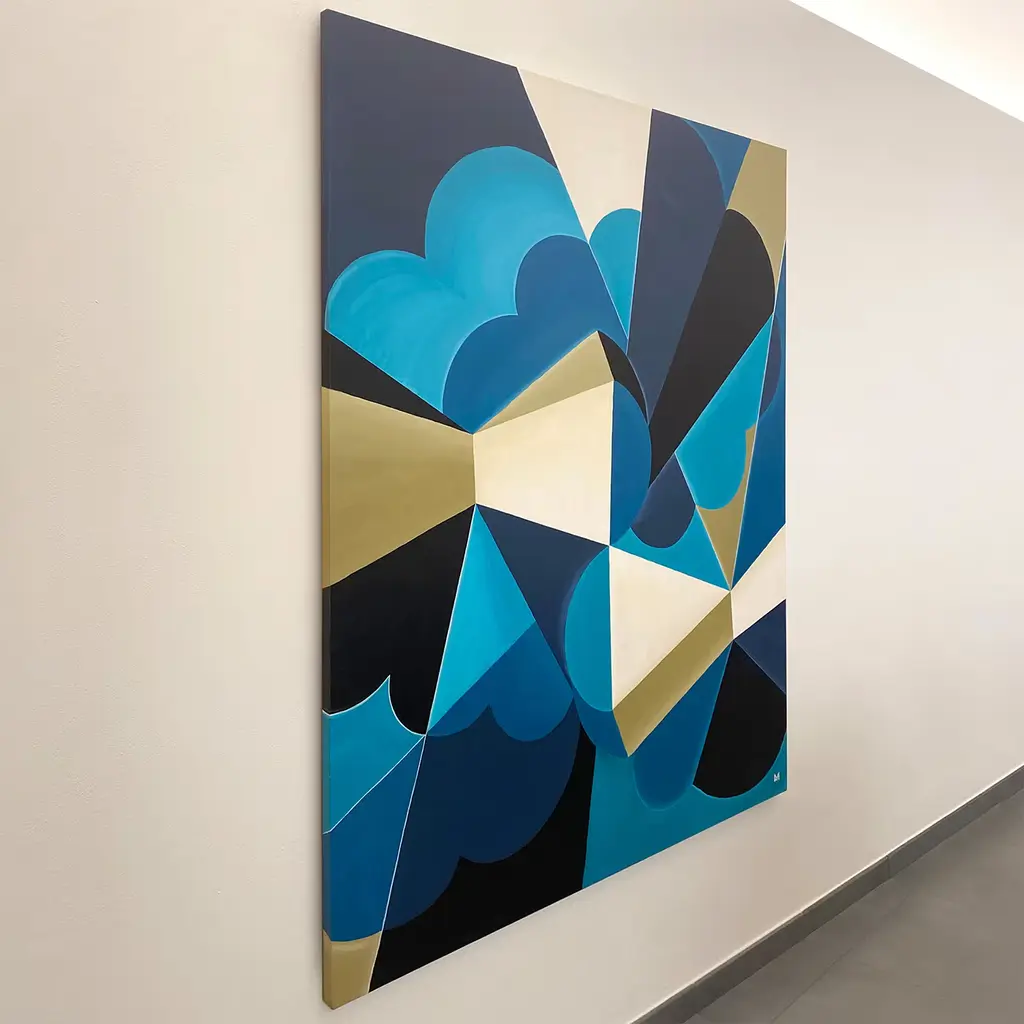 This sensational acrylic on canvas by Marzia Boaglio captures the unique feeling when, after something marvelous happens, you begin to blissfully daydream about the future. The kaleidoscope of contrasting blue colors distinguishes its entrancing character, recalling the blue sky we instinctively look to when dreaming with eyes wide open. With all of the charm of a collector's piece, this painting will make for a superb addition to a modern living room or personal study.