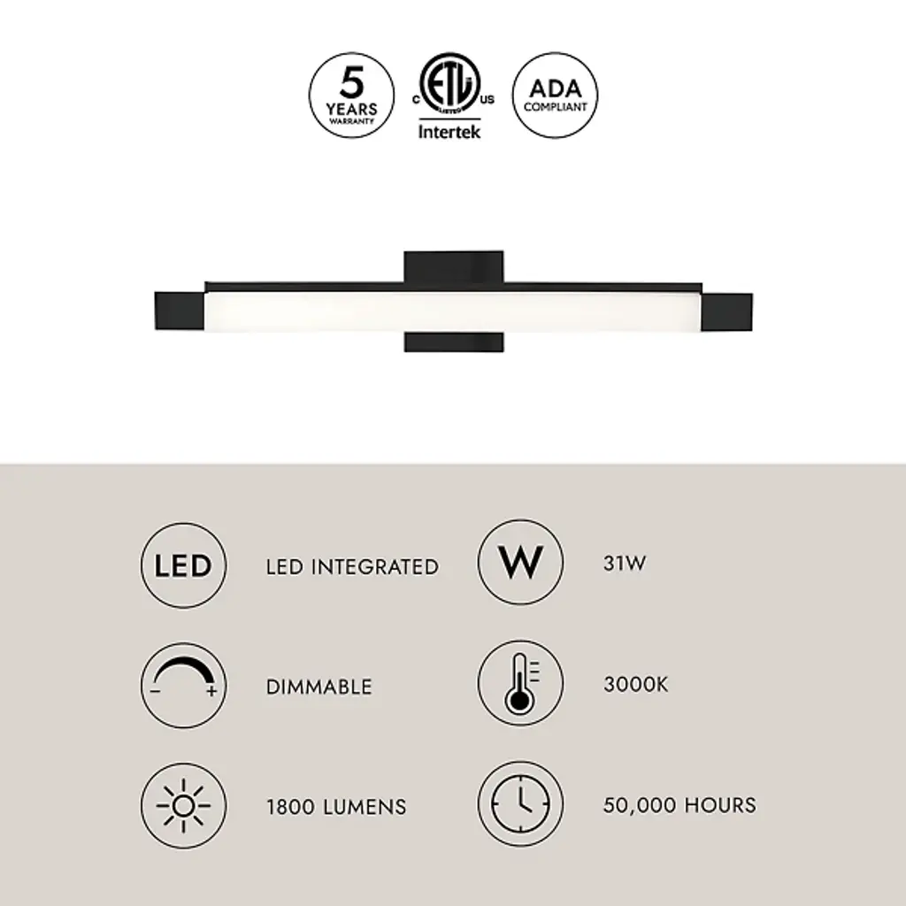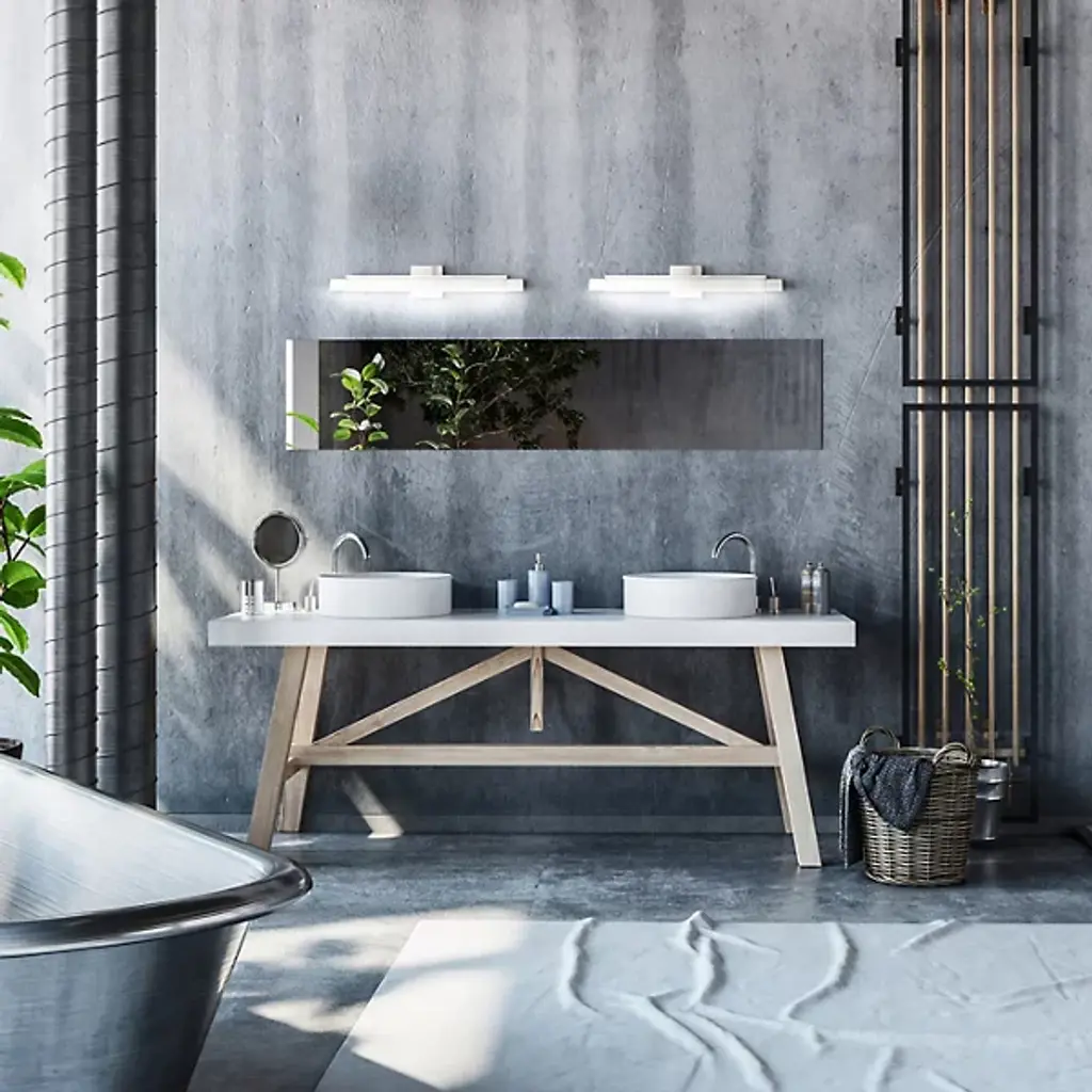 The Soho LED Vanity Light by Kuzco Lighting adds a confident and tailored touch to its surroundings. With a linear form, an extruded Polymeric diffuser evenly disperses light and is capped with metallic ends that complete the geometric form displayed throughout this fixture. Anchored by a strong square backplate, this piece feels light and contemporary. A little bit sophisticated and a little bit bold, this is a handsome addition to bathrooms both big and small.