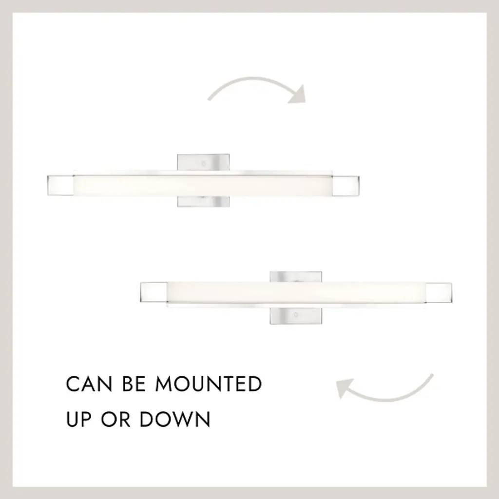 The Soho LED Vanity Light by Kuzco Lighting adds a confident and tailored touch to its surroundings. With a linear form, an extruded Polymeric diffuser evenly disperses light and is capped with metallic ends that complete the geometric form displayed throughout this fixture. Anchored by a strong square backplate, this piece feels light and contemporary. A little bit sophisticated and a little bit bold, this is a handsome addition to bathrooms both big and small.