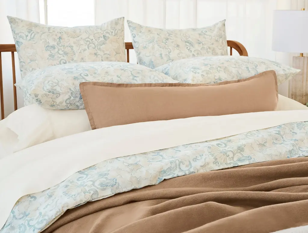 Modern techniques blend with vintage inspiration to create this original botanical pattern. The artwork was hand-painted by a textile artist and then digitally printed for an antique effect. This design pulls from a variety of global influences, like a century-old Japanese Sarasa fabric and traditional Indian woodblock prints.
