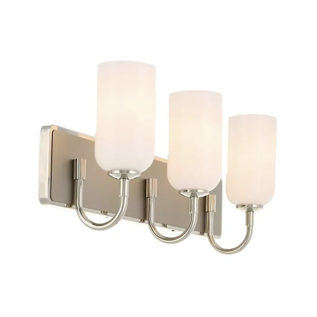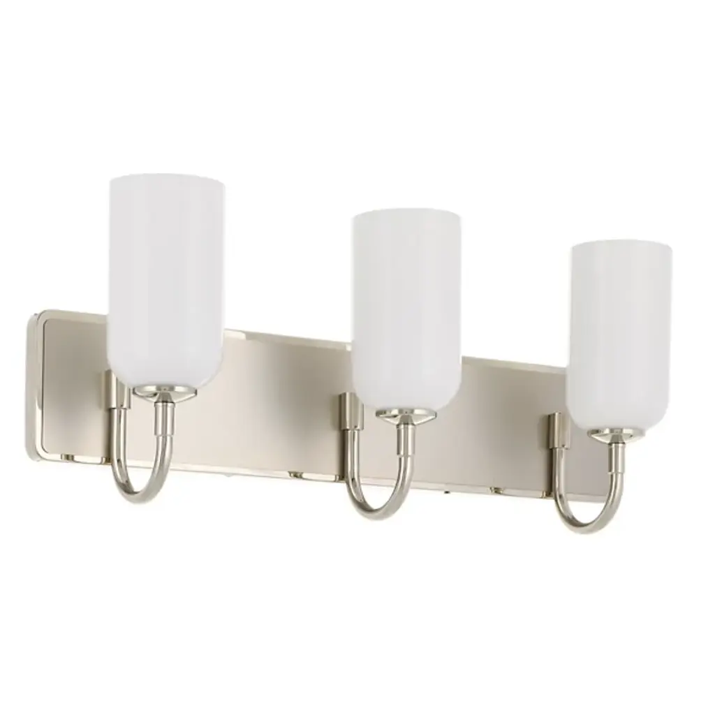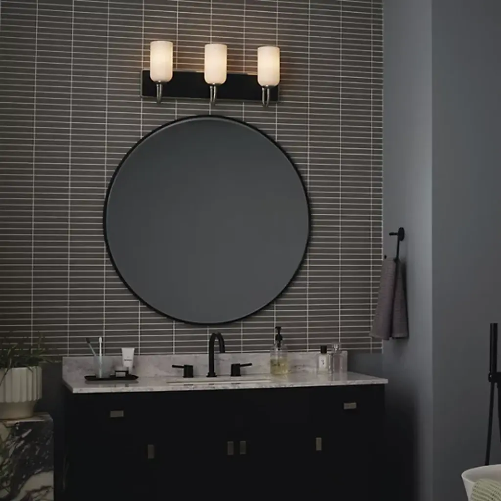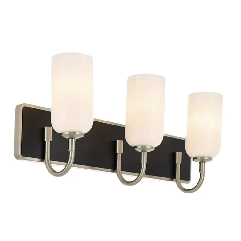 The Solia Vanity Light by Kichler adds a touch of refinement to any bathroom. The light features a clean, curved design with open glass shades and a brushed metal frame. Inspired by simplicity, its beautiful opal glass reduces glare and increases shine, giving your bathroom a warm, welcoming glow. It is dimmable so that you can create the perfect ambiance in any bathroom, from traditional to contemporary.