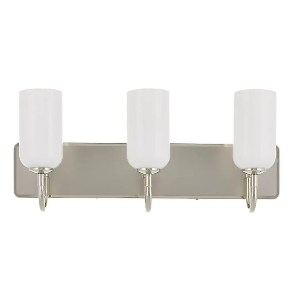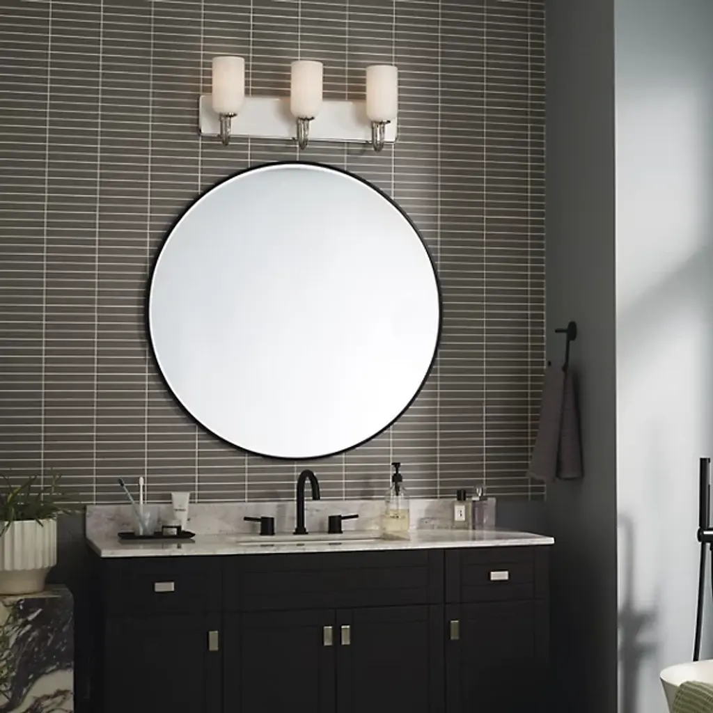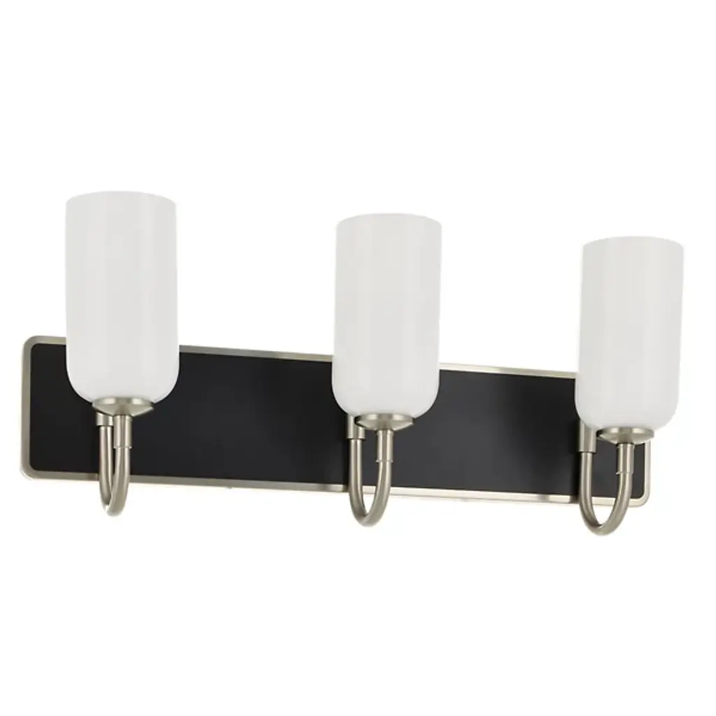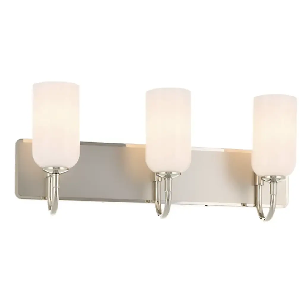 The Solia Vanity Light by Kichler adds a touch of refinement to any bathroom. The light features a clean, curved design with open glass shades and a brushed metal frame. Inspired by simplicity, its beautiful opal glass reduces glare and increases shine, giving your bathroom a warm, welcoming glow. It is dimmable so that you can create the perfect ambiance in any bathroom, from traditional to contemporary.