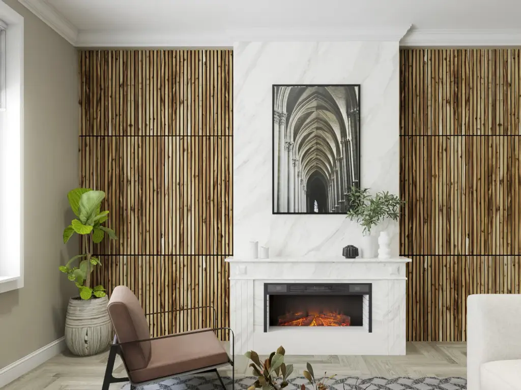 ACACIA SOLID WOOD SLAT WALL PANELSExperience the extraordinary beauty of Acacia wood with our Acacia Solid Wood Slat Wall Panels. Crafted from 100% all-natural Acacia wood, these panels showcase a stunning rich, golden-brown color that is unmistakable. With an attractive straight-to-slightly-wavy grain, Acacia wood exudes a sense of warmth and naturalistic charm. Its density makes it highly durable and resistant to wear, making it an ideal choice for various naturalistic styles.✅SPECIFICATIONS: Our Solid Wood Slat Wall Panels are meticulously hand-treated to enhance their natural beauty and ensure maximum durability. Each box contains a pair of wood wall panels, with each wood slat wall panel measuring 46 x 20 11/16 x 7/8 inches. These slat wall panels seamlessly join together, allowing you to create a professional-looking DIY wood slat wall that adds depth and character to your space.✅EASY INSTALLATION FOR DIYERS & PROFESSIONALS: Installing our Acacia slat wall panels is a simple and rewarding DIY project. With a circular saw, screws, and/or construction adhesive, you can effortlessly bring the beauty of Acacia wood to your walls. These panels are suitable for most standard walls, as well as ceilings, alcoves, windows, and gently curved surfaces. ✅IMPROVE SOUND QUALITY: Woody Walls Acacia acoustic wood panels are designed to deliver high-quality acoustic performance. By reducing echoes and reverberation, each wood slat wall panel absorbs and scatters stray noise, significantly improving the overall sound quality of your space. Enjoy a more refined and pleasant auditory experience with our Acacia wood slatted wall panels.✅BRING YOUR DREAM DÉCOR STYLE TO LIFE: Discover the versatility of our Acacia wood slat wall paneling in transforming your space. Not only do these panels enhance sound quality, but they also help create modern, Bohemian, and various other styles. Upgrade your walls affordably and effortlessly, without the need for a full renovation. Experience the perfect harmony of acoustic performance and exotic elegance with our Acacia Solid Wood Slat Wall Panels.Explore our collection of wood slat wall paneling and bring your dream décor style to life with Woody Walls.